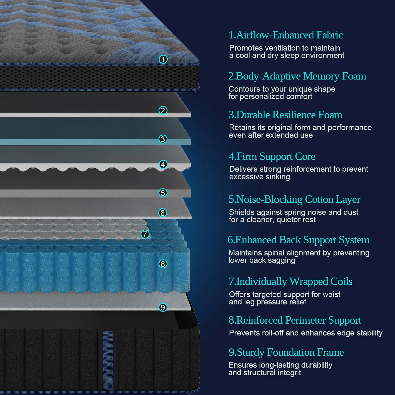 STAY COOL ALL NIGHT LONG - Our hybrid mattress covers are made of high-end knit fabric with a comfortable and breathable surface. Cooling Gel-Infused Memory Foam enhances airflow, helps dissipate body heat and stabilizes your sleep temperature, offering a cool sleep experience.