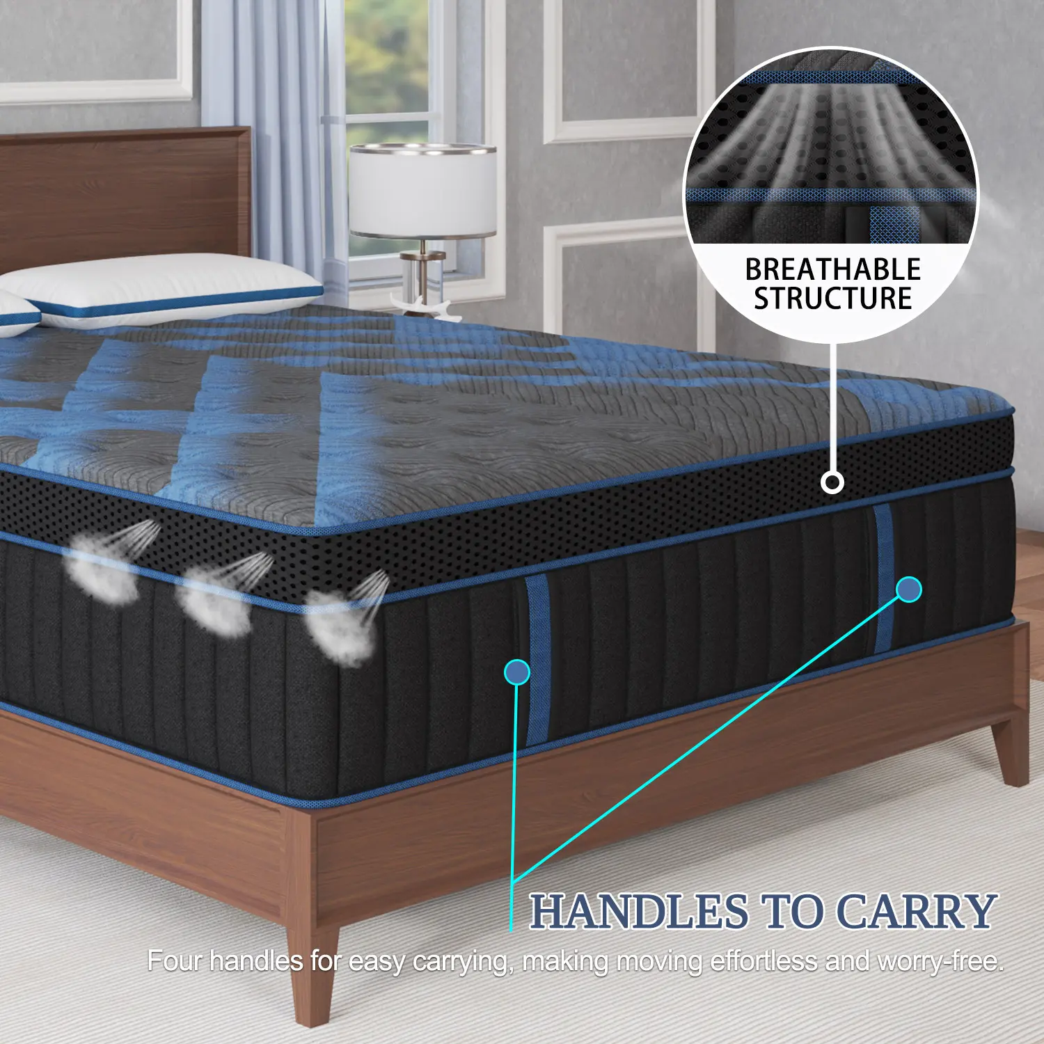 MOTION ISOLATION & EDGE SUPPORT - Independent support between the springs, eliminates the movement of interference, avoiding friction between each other to make noise, and providing you with a noise-free sleep, you can wake up feeling energetic and refreshed after a night of undisturbed sleep. The thickened springs at both edges improve the edge support of the mattress, so you won't feel unstable sleeping near the edge of the mattress or roll off.
