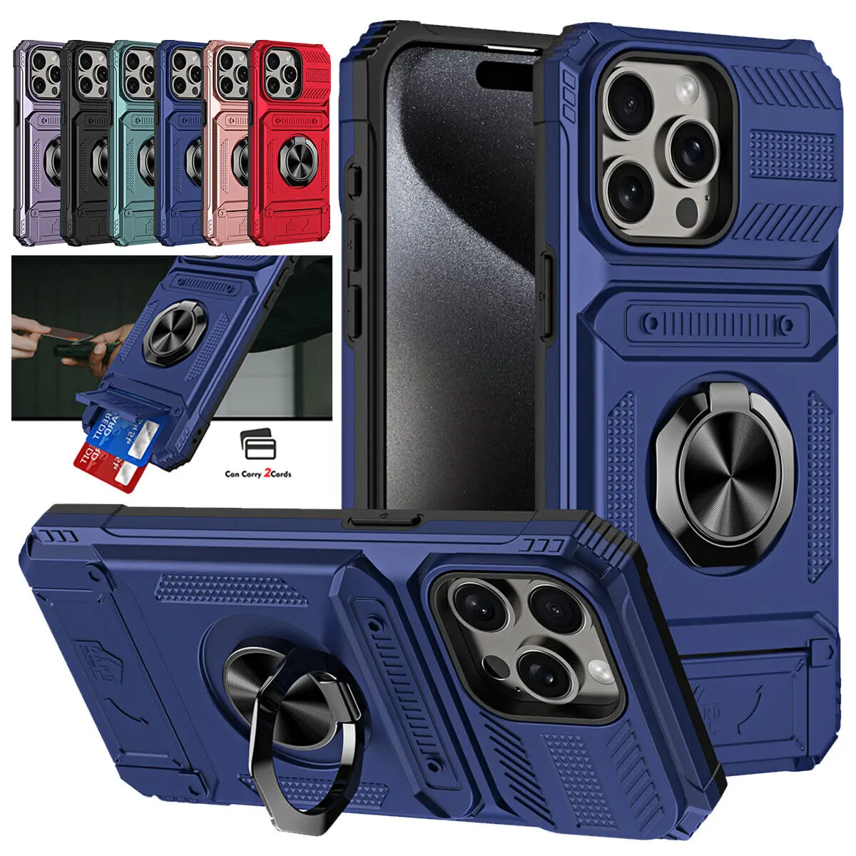 Hybrid Armor Shockproof 360 Rotating Magnetic Metal Ring Holder Stand Case Heavy Duty Cover For iPhone 16 Pro Max15 Plus 14 13 Pro Max