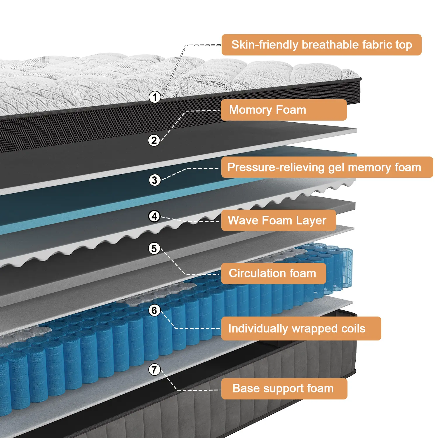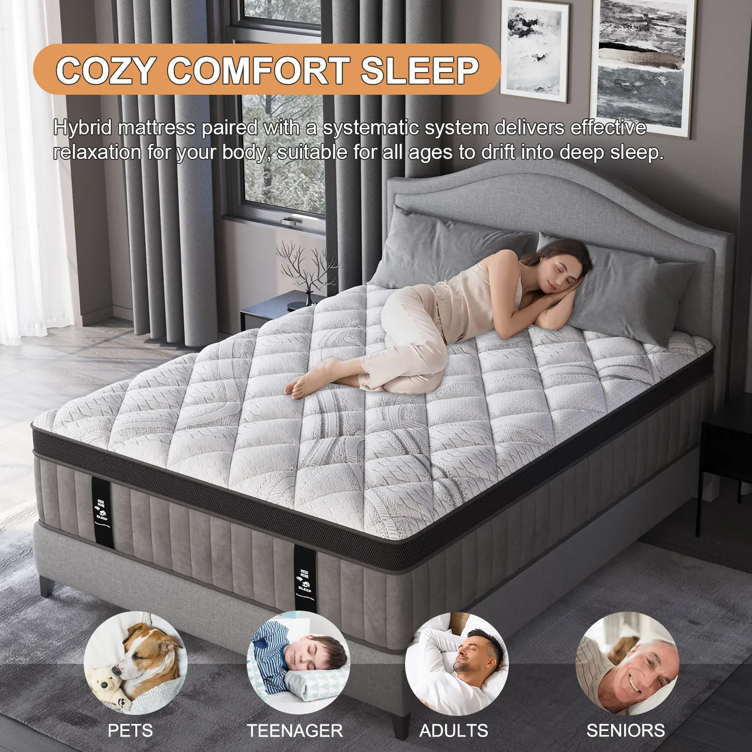 【Silent Sleep, Motion Isolated】: Enjoy a peaceful night's sleep without disturbances with our medium firm hybrid mattress featuring individual pocket springs that minimize noise and motion transfer, making it perfect for couples sharing a bed. Rest assured that you will remain undisturbed throughout the night for a truly serene sleep experience.