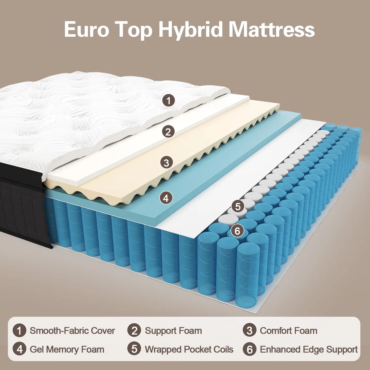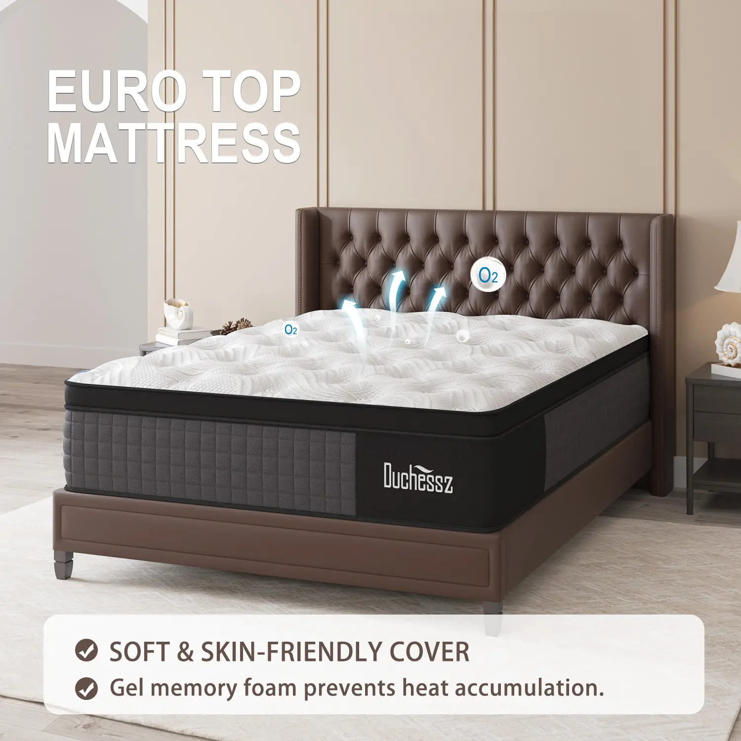 STAY COOL ALL NIGHT LONG - Duchessz hybrid mattress covers are made of high-end knit fabric with a comfortable and breathable surface. Cooling Gel-Infused Memory Foam enhances airflow, helps dissipate body heat and stabilizes your sleep temperature, offering a cool sleep experience.