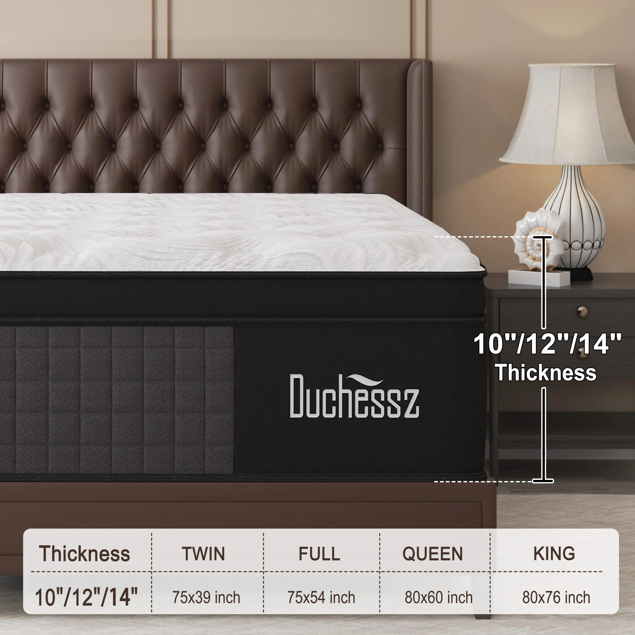 5. Duchessz 10"12"14" Twin Full Queen King Size Mattress in a Box Ergonomic Hybrid Spring Cooling Gel Memory Foam Medium Firm
