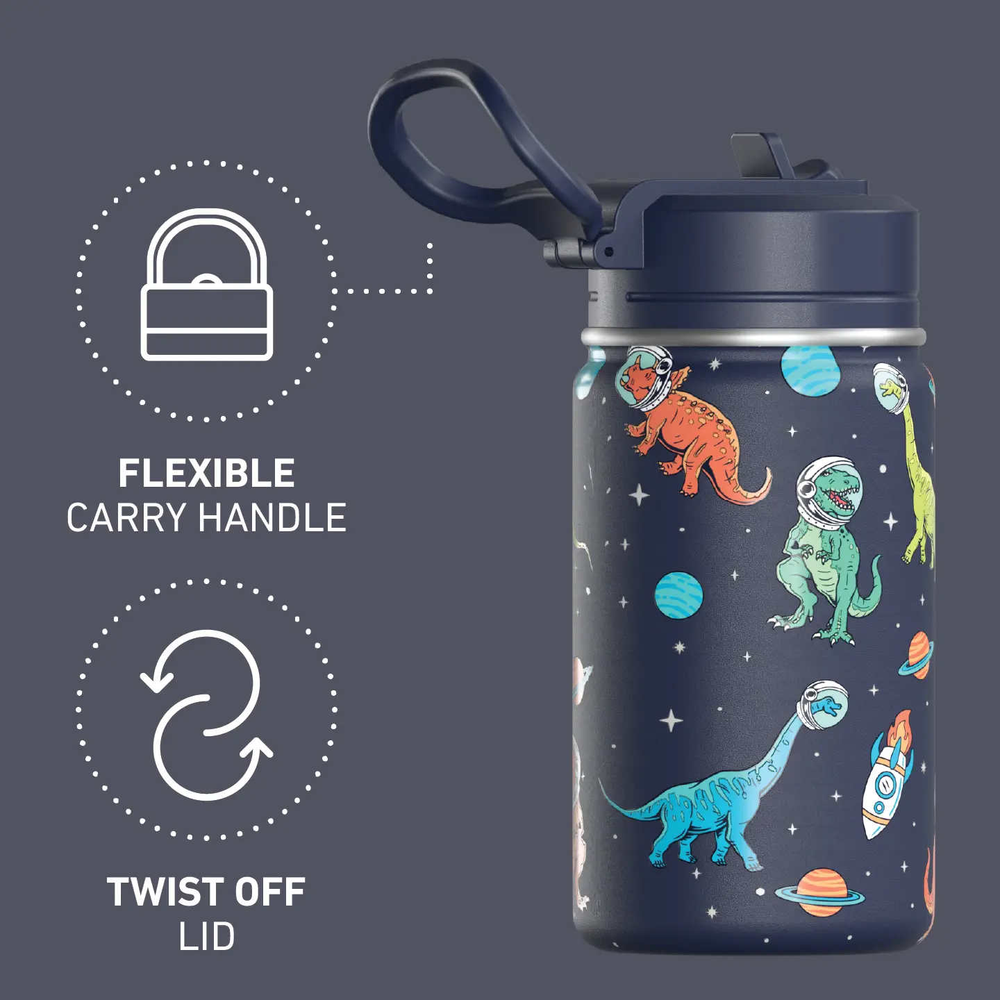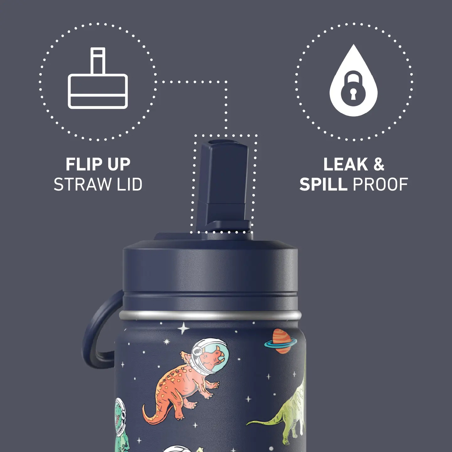 Why parents + kids love it: • 24 hr cold – double-wall vacuum insulated steel • Leak & spill proof flip-up straw lid • Soft carry loop clips to lunchboxes & backpacks • ️Sweat-free exterior keeps books & tablets dry • Wide-mouth twist lid = easy ice & cleaning (dishwasher-safe top) • BPA & toxin-free 18/8 stainless steel • Cup-holder friendly slim design