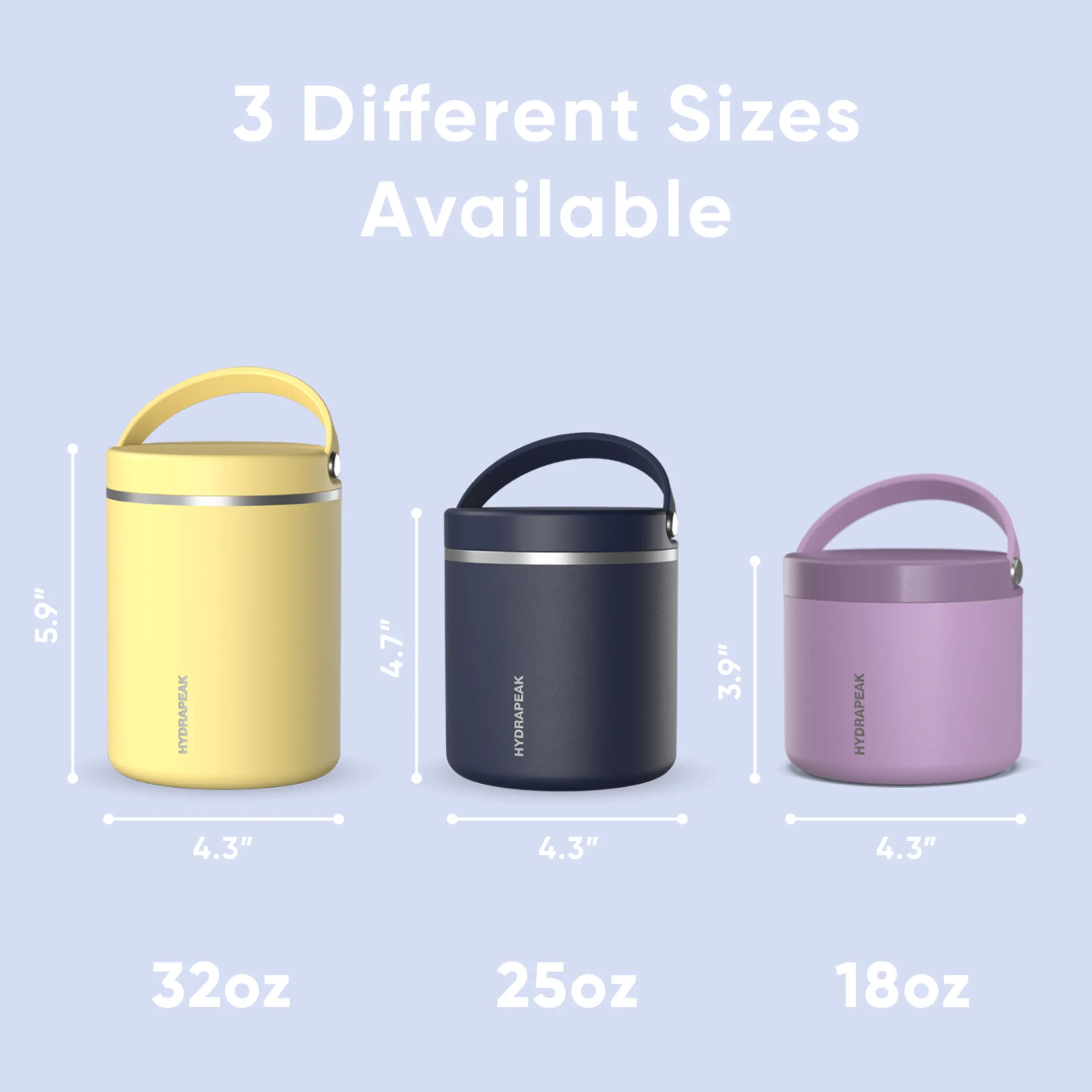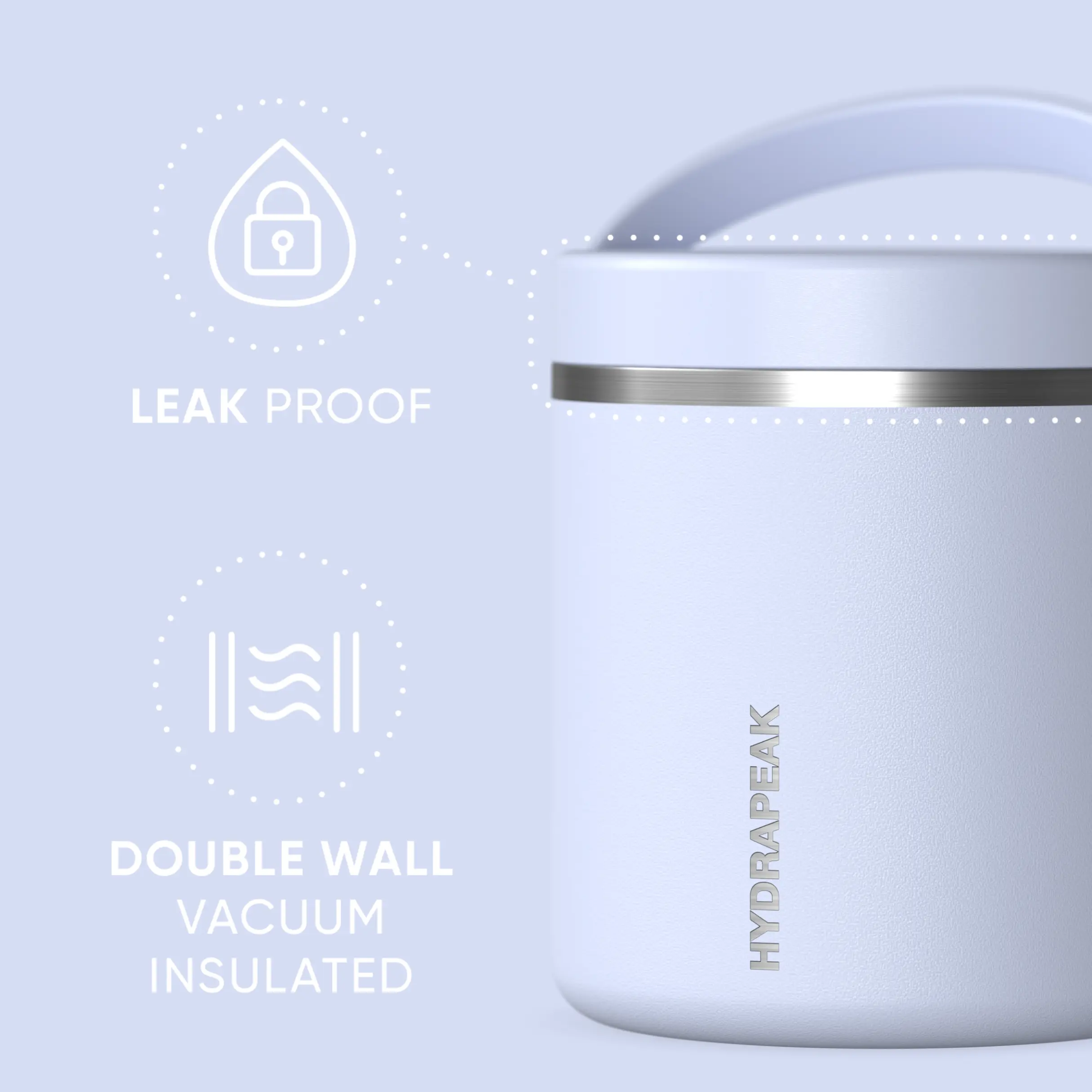 ALL DAY INSULATION; Hydrapeak's double wall vacuum insulation technology helps their insulated food container keep contents HOT for 10 HOURS, and COLD for 16 HOURS, making it the perfect thermos lunch box