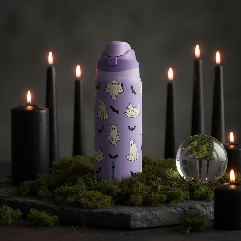Crafted with Hydrapeak’s signature double-wall vacuum insulation, it keeps drinks cold for 24 hours or hot for 12, while the Oasis flip lid makes sipping effortless on the go. Made from durable stainless steel, this bottle is sweat-proof, leak-proof, and built to last—perfect for trick-or-treating, haunted house hopping, or everyday adventures.