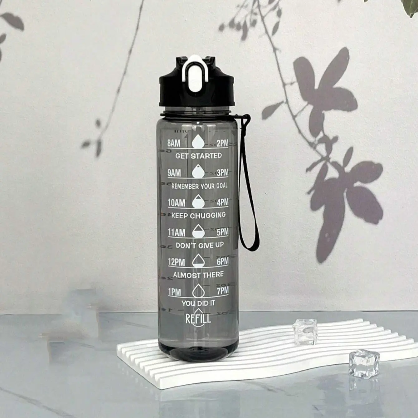 【Time Markings】: Equipped with time scale, this water bottle helps you track daily hydration goals easily and efficiently.