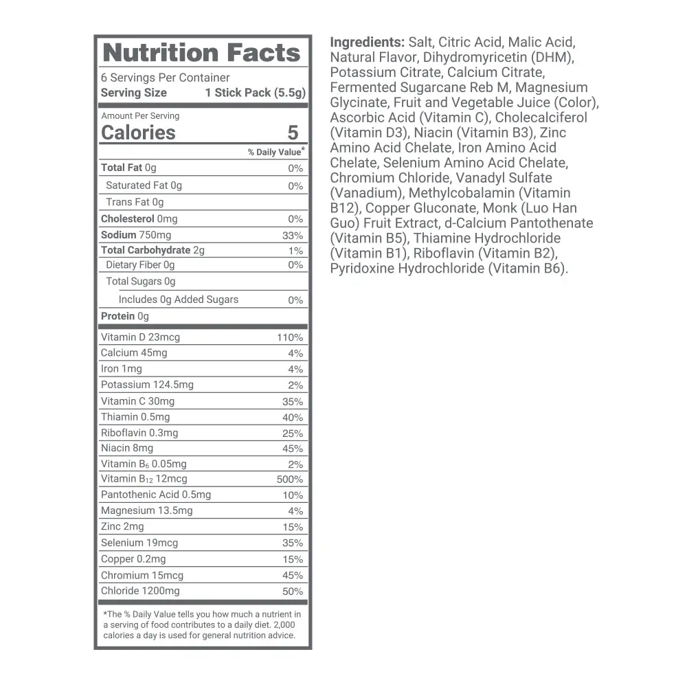 ·2133mg of Electrolytes – Contains 50% more electrolytes than our core Hydrate formula to restore balance fast