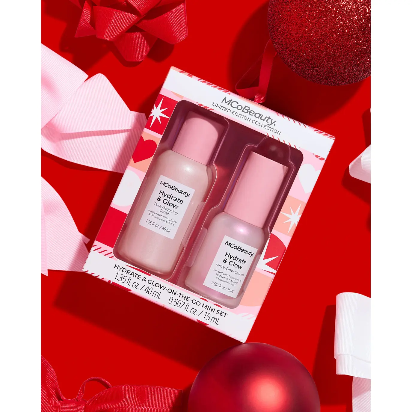 MCoBeauty HOLIDAY COLLECTION HYDRATE & GLOW-ON-THE-GO MINI SET contains two ultra-dewy products to give your skin a visibly plump glow wherever you go.