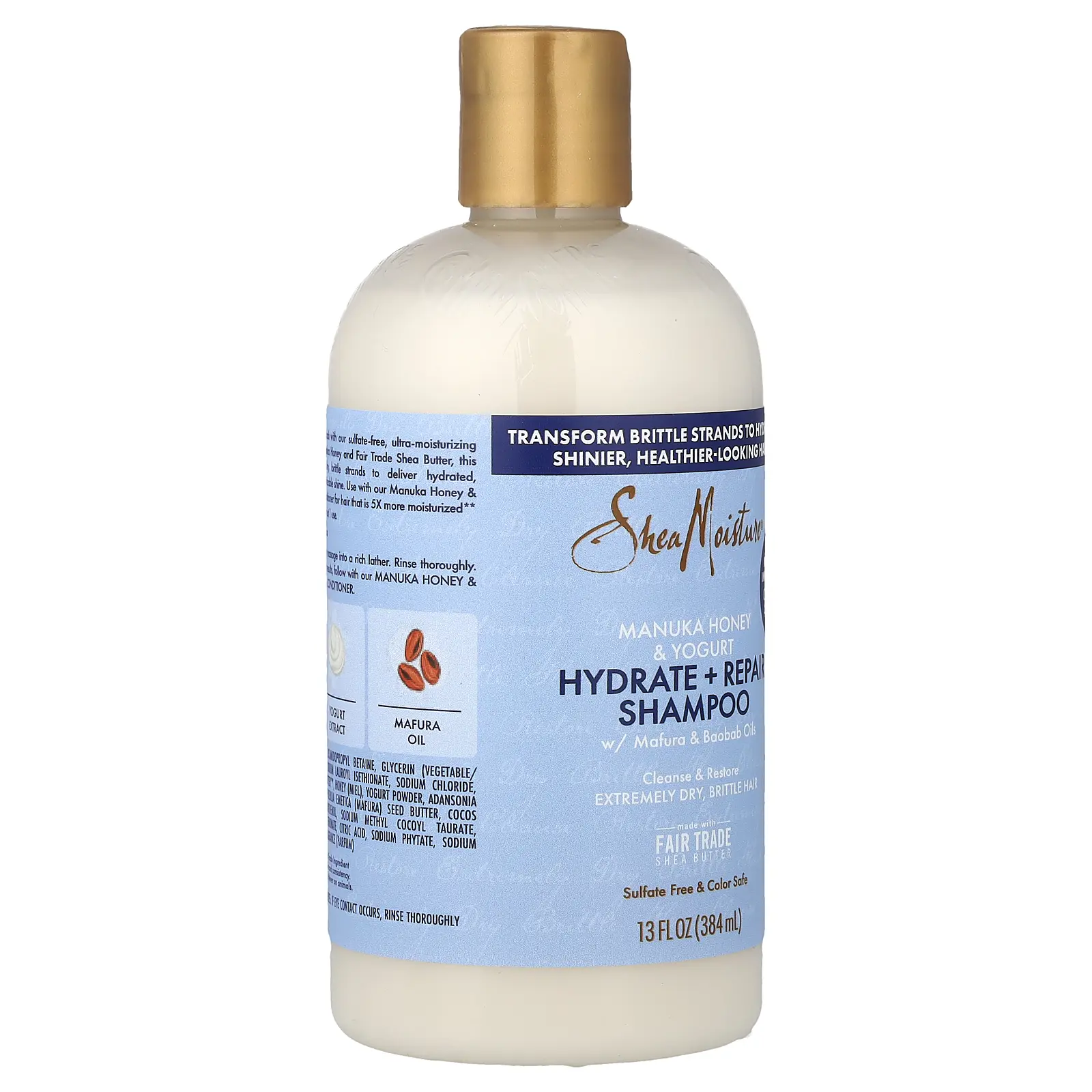 SheaMoisture Manuka Honey & Yogurt, Hydrate + Repair Shampoo with Mafura & Baobab Oils, 13 fl oz (384 ml)
