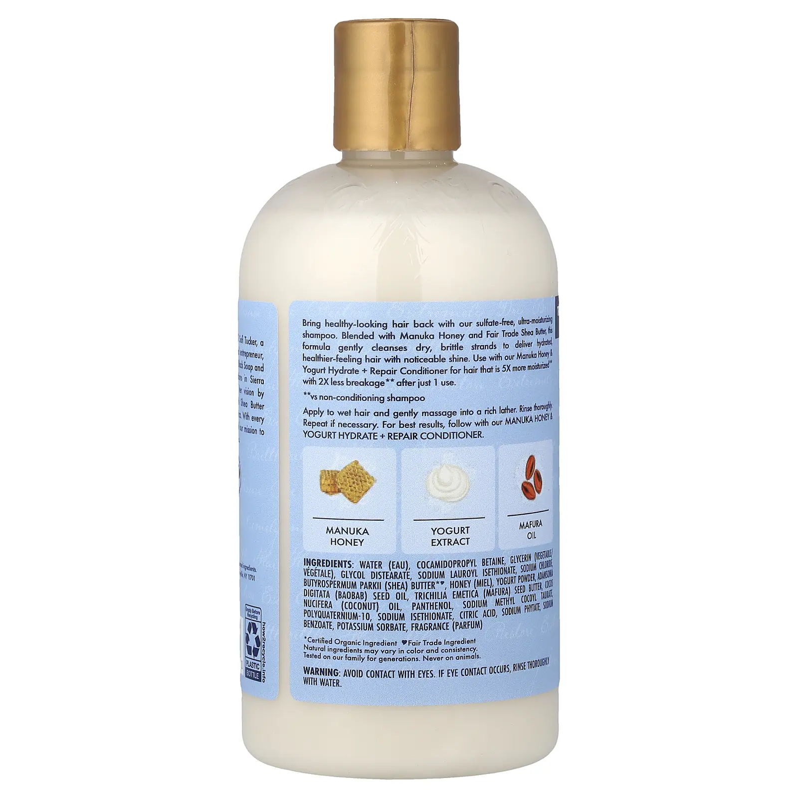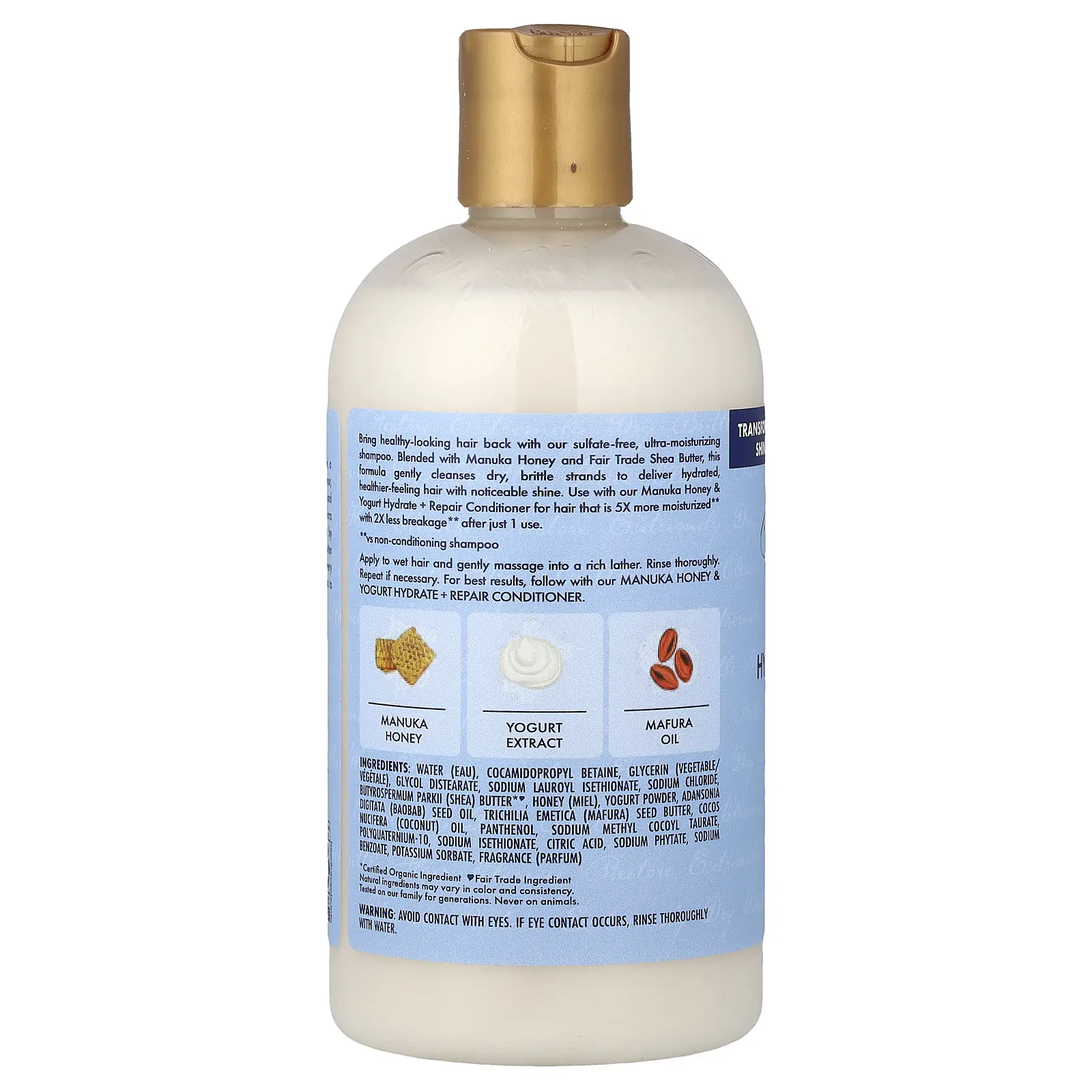 5. SheaMoisture Manuka Honey & Yogurt, Hydrate + Repair Shampoo with Mafura & Baobab Oils, 13 fl oz (384 ml)