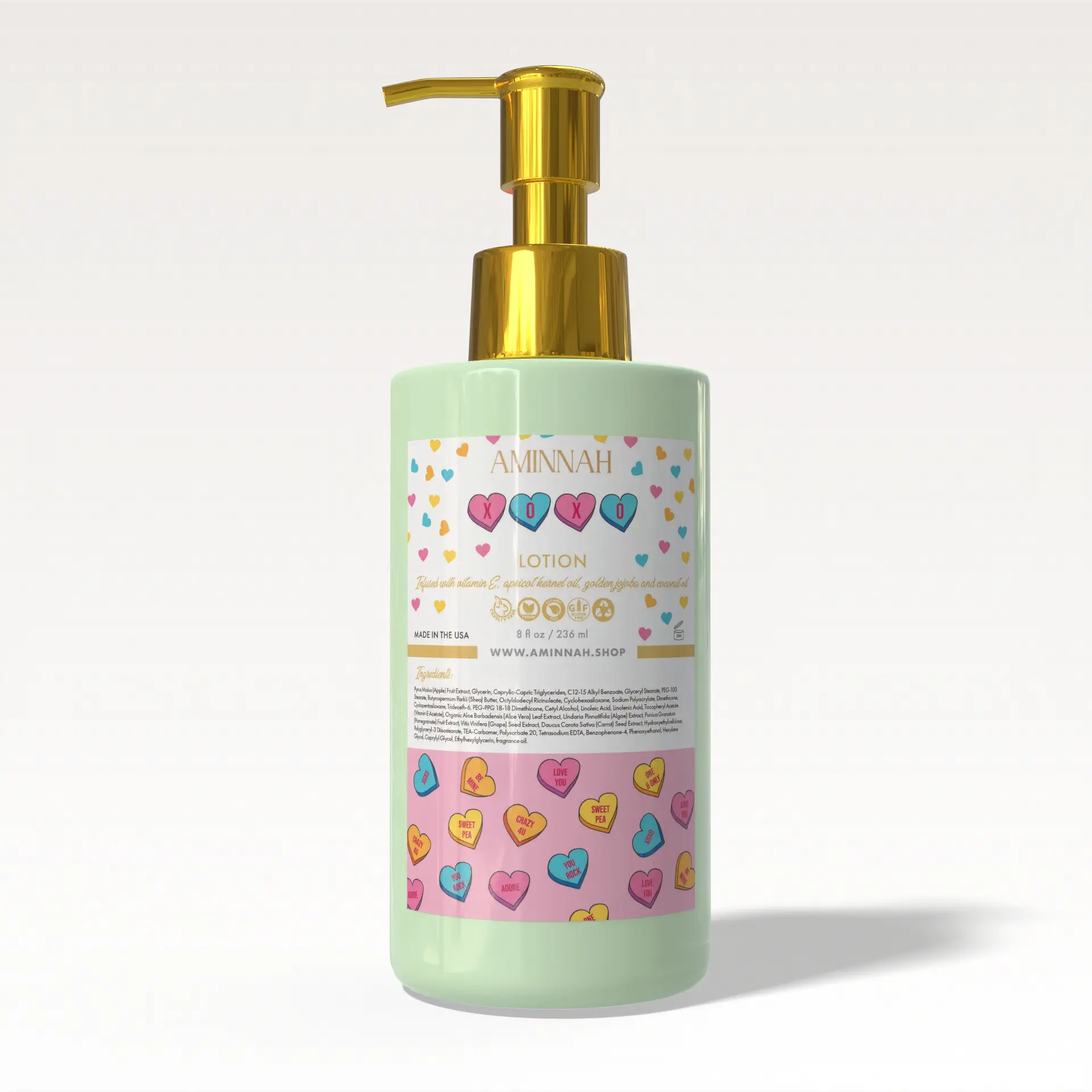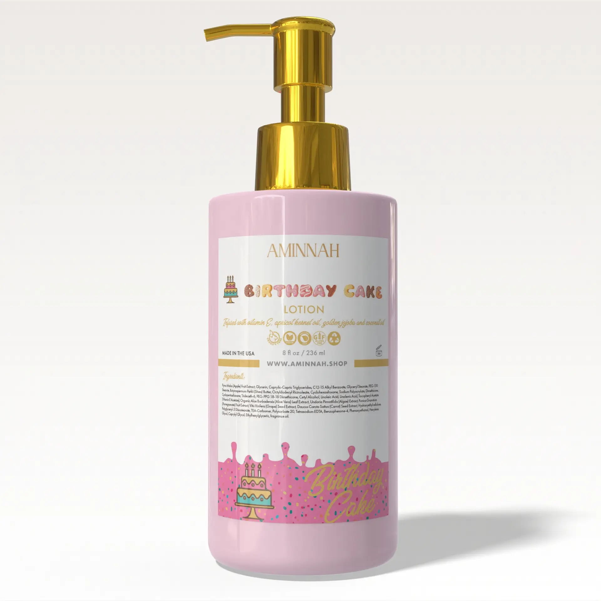 | Ingredients | Pyrus Malus (Apple) Fruit Extract,Glycerin,Caprylic-Capric Triglycerides,C12-15 Alkyl Benzoate,Glyceryl Stearate,PEG-100 Stearate,Butyrospermum Parkii (Shea) Butter,Octyldodecyl Ricinoleate,Cyclohexasiloxane,Sodium Polyacrylate,Dimethicone,Cyclopentasiloxane,Trideceth6,PEG-PPG 18-18 Dimethicone,Cety1 Alcohol,Linoleic Acid,Linolenic Acid,Tocophery1 Acetate (Vitamin E Acetate),Organic Aloe Barbadensis (Aloe Vera) Leaf Extract,Undaria Pinnatifida (Algae) Extract,Punica Granatum (Pomegranate) Fruit Extract,Vitis Vinifera (Grape) Seed Extract,Daucus Carola Saliva (Carrot) Seed Extract,Hydroxyethylcellulose,Polyglycery13 Diisostearate,TEA-Carbomer,Polysorbate 20,Tetrasodium EDTA,Benzophenone-4,Phenoxyethanol,Hexylene Glycol,Caprylyl Glycol,Ethylhexylglycerin,fragrance oil. |