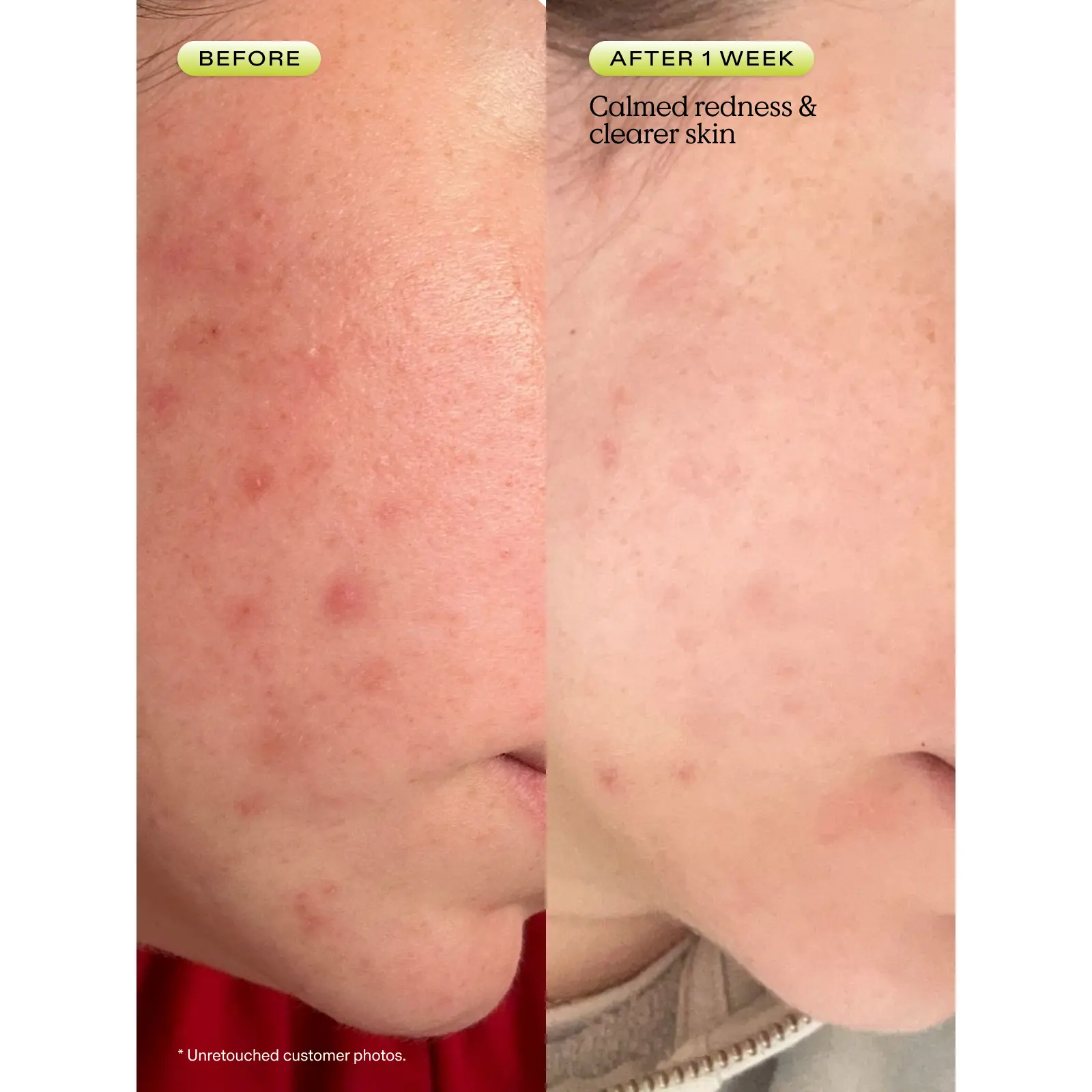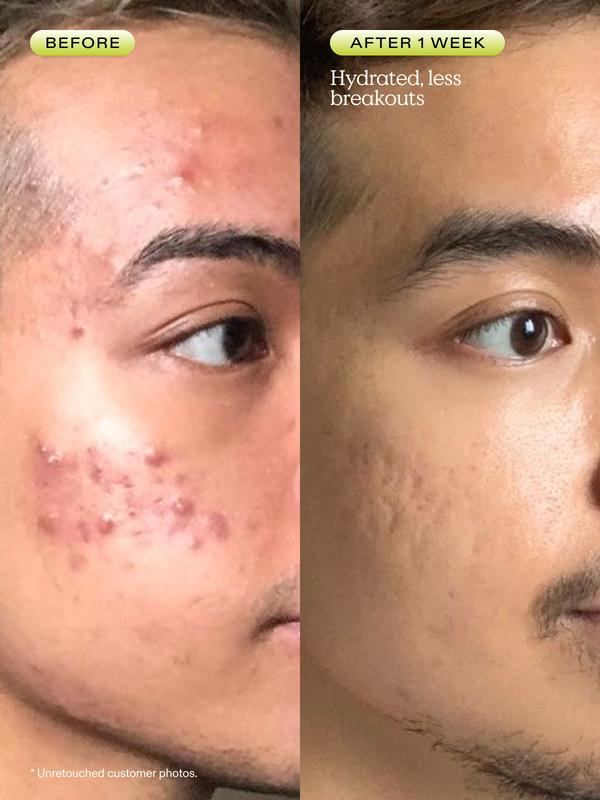 Listen, I spend a lot of money on skincare to tackle my acne and eczema prone skin. For the last 6 months nothing I was buying seemed to calm my breakouts, UNTIL NOW! This is the only* cleanser I have ever tried that doesn’t leave my skin feeling tight afterwards. The difference in the photos is ONLY A WEEK! I will never buy another cleanser. Thank you Krave <3