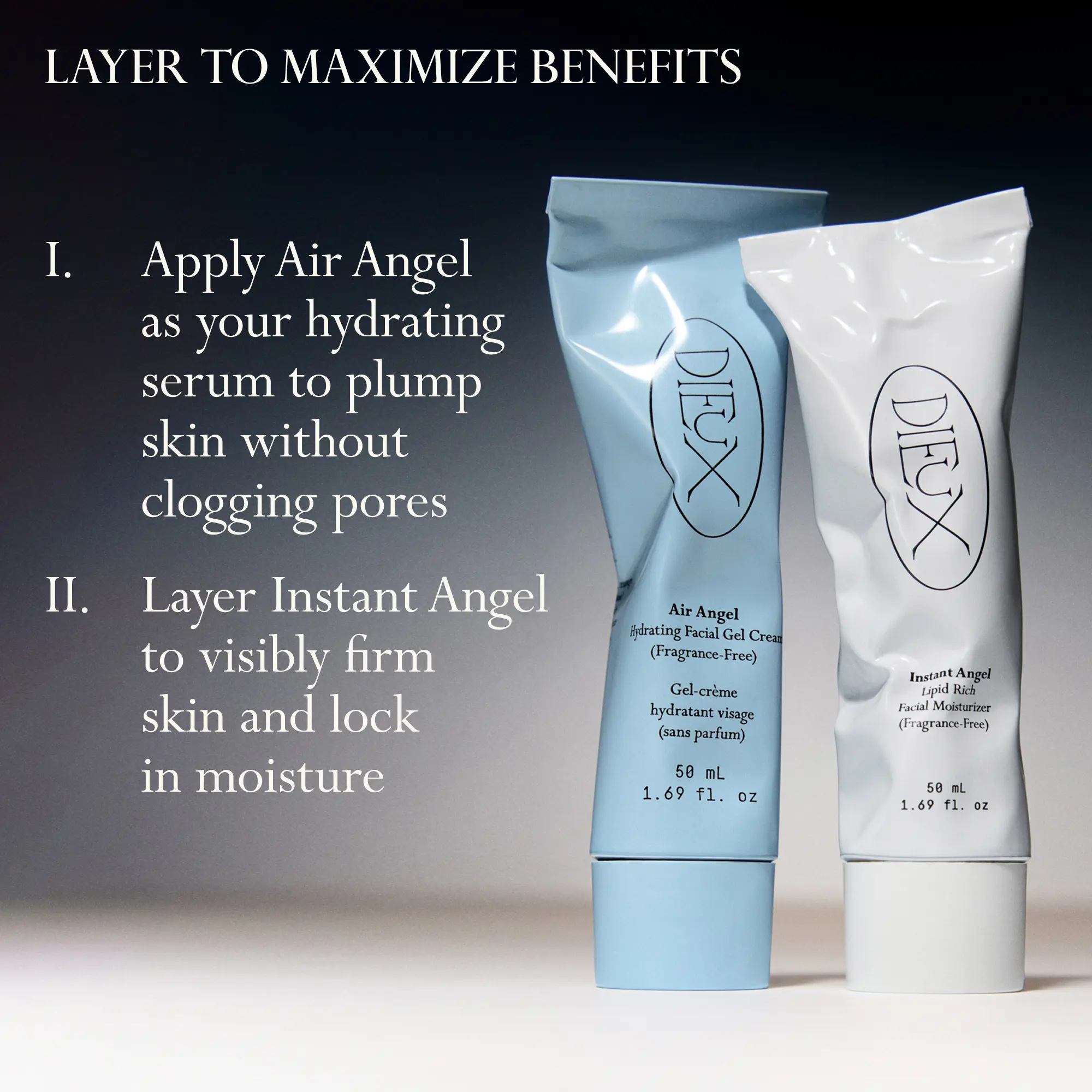 Tip: If you're in a very dry climate or prone to dry skin, Air Angel can be layered under Instant Angel as an extra hydrating step.