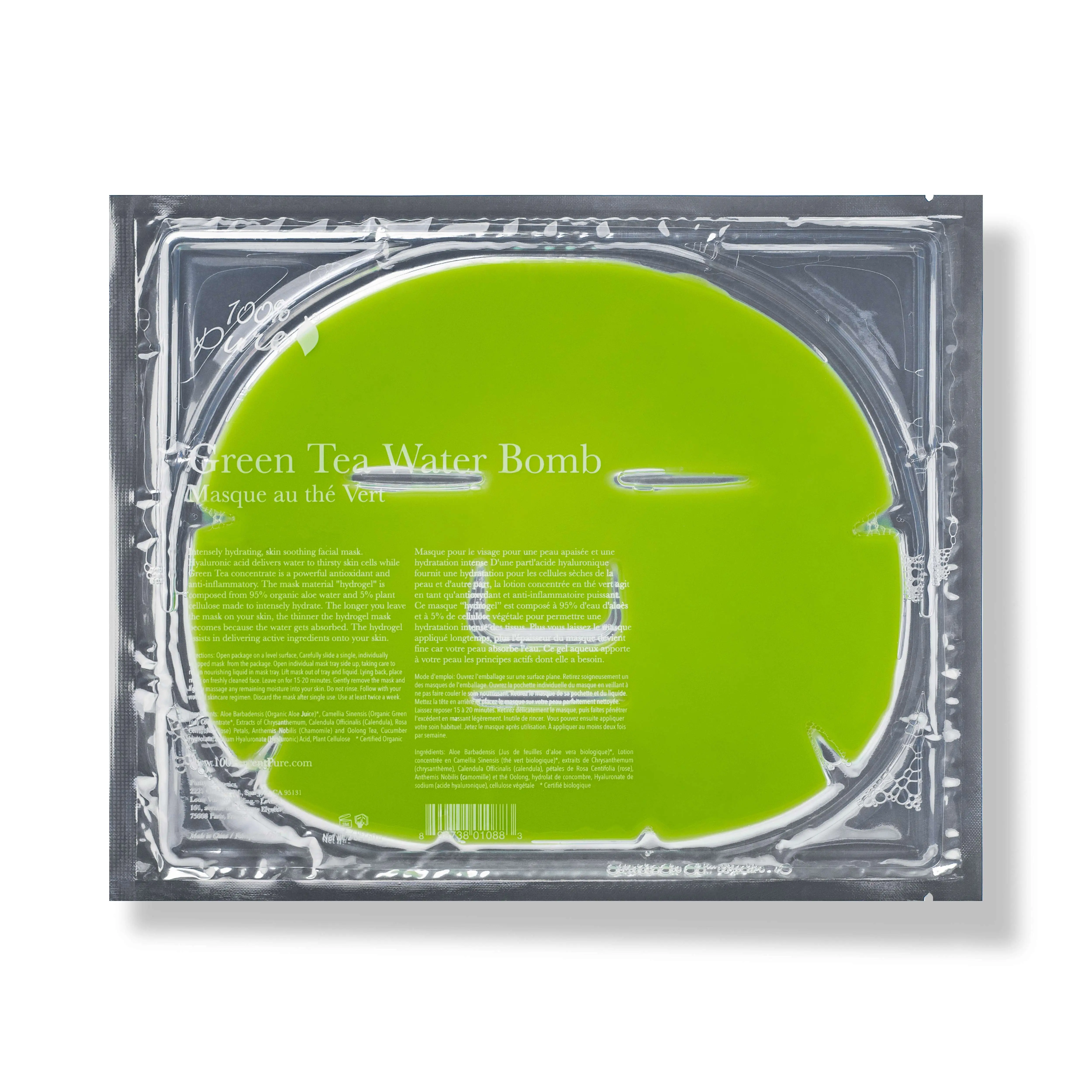 Intensely hydrating, skin-soothing facial mask uses refreshing cucumber and powerful hyaluronic acid to replenish dry skin. Made with anti-inflammatory and antioxidant-rich green tea, to help soothe and protect. The "hydrogel" mask material is composed of 95% organic aloe juice and 5% plant cellulose, to intensely quench and soothe skin. The hydrogel material will thin as you wear it, as hydration is literally transferred from the mask into your skin. This innovative hydrogel technology assists in delivering active ingredients, and aids in nutrient absorption for more targeted skin nourishment.