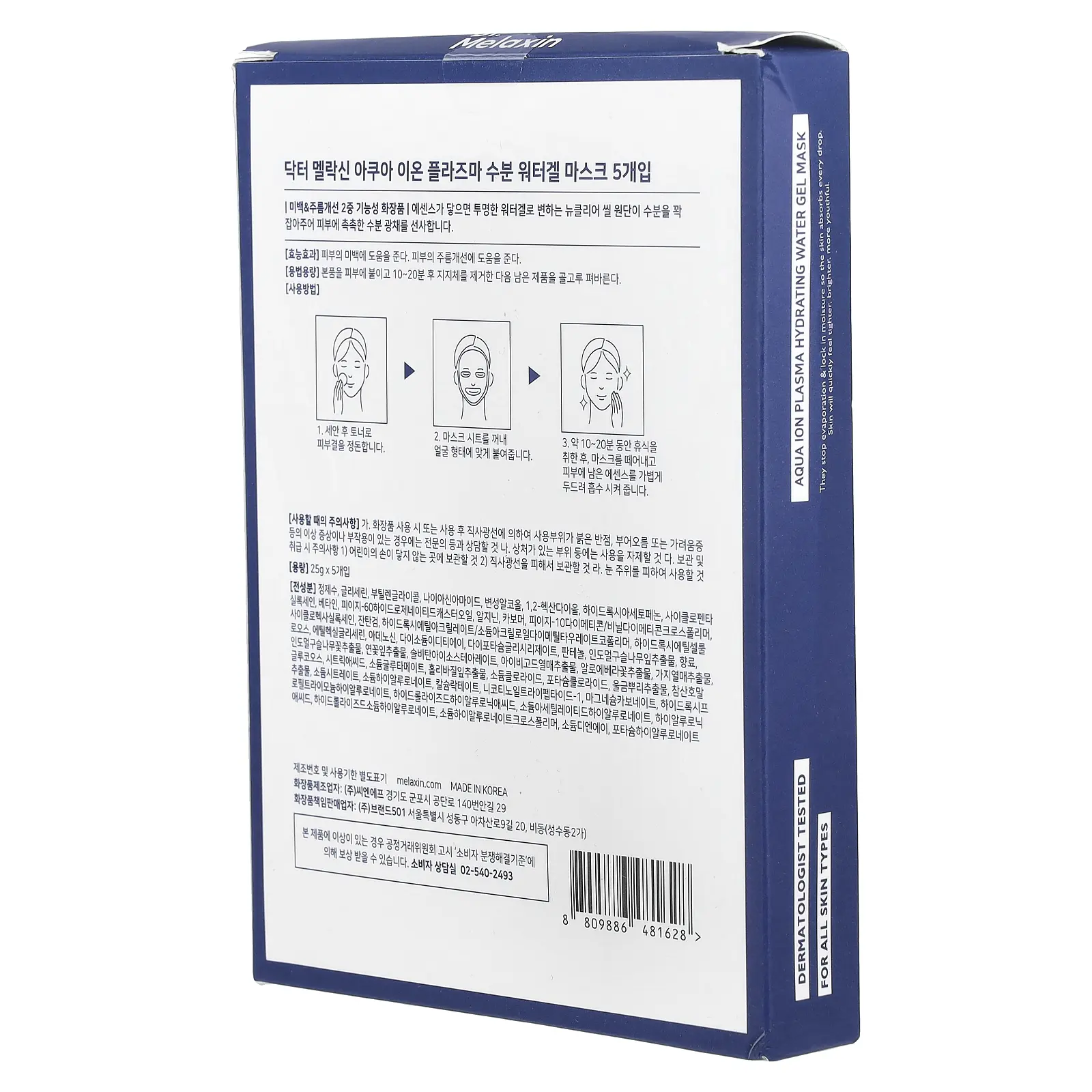 5. Dr.Melaxin Aqua Ion Plasma, Hydrating Water Beauty Gel Mask, 5 Sheets, 0.88 oz (25 g) Each