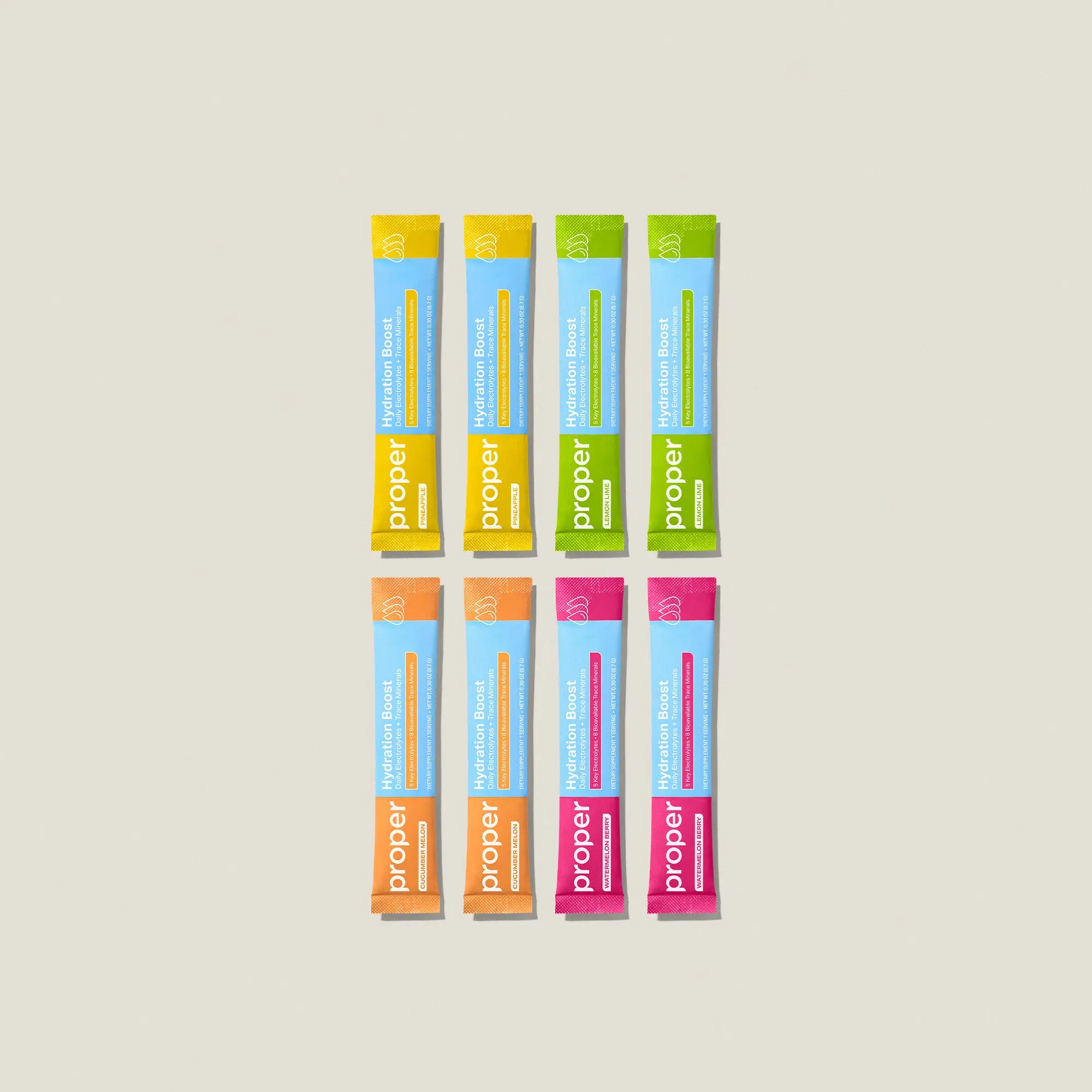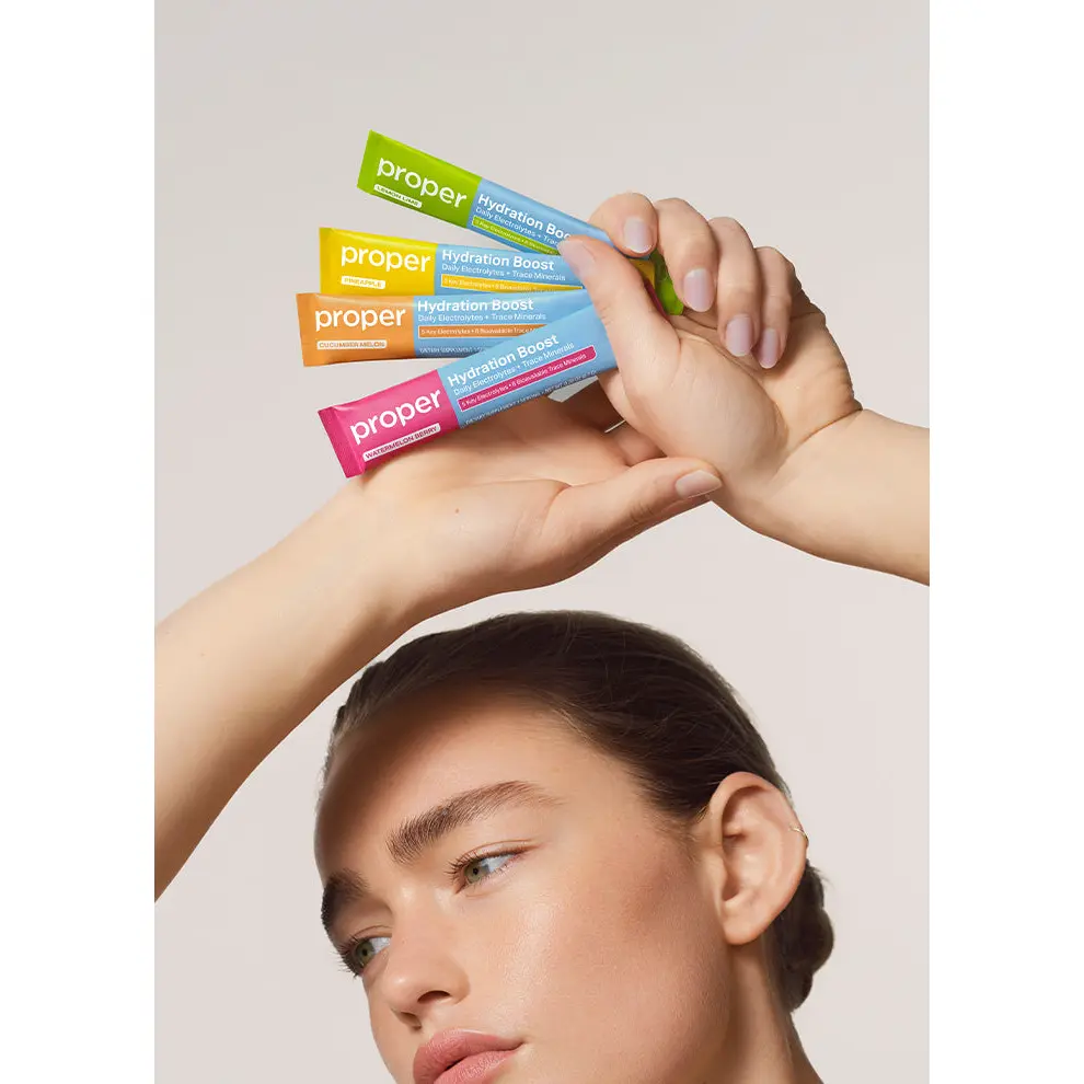 Get your Hydration Boost Powder Stick Packs - 8 count - Pineapple, Lemon Lime, Cucumber Melon, Watermelon Berry #properhealth  #electrolites  @Proper Health