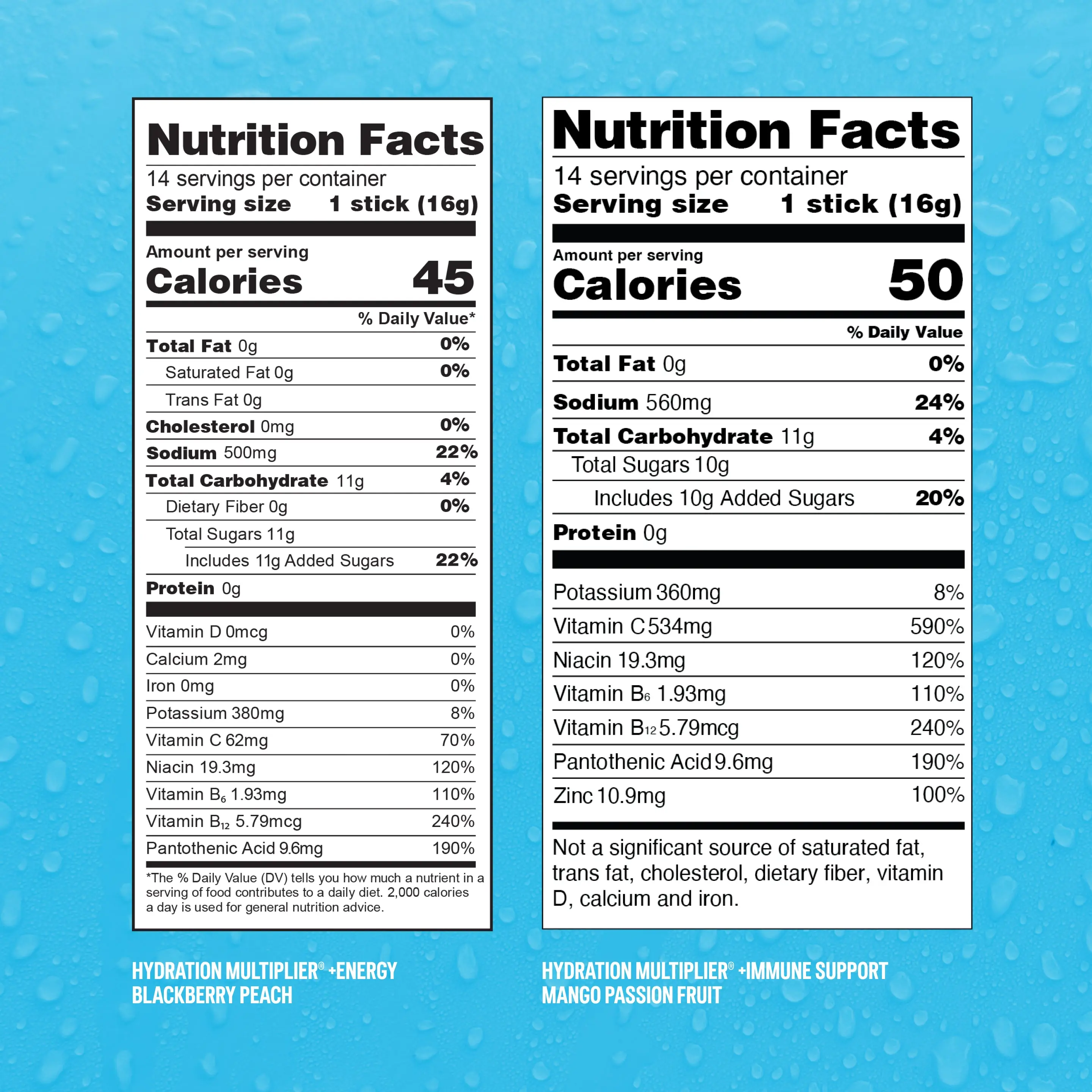Hydrate and feel your best this season with TWO new flavors. This bundle contains 1 pouch of Hydration Multiplier® +Energy Blackberry Peach and 1 pouch of Hydration Multiplier® +Immune Support Mango Passion Fruit.