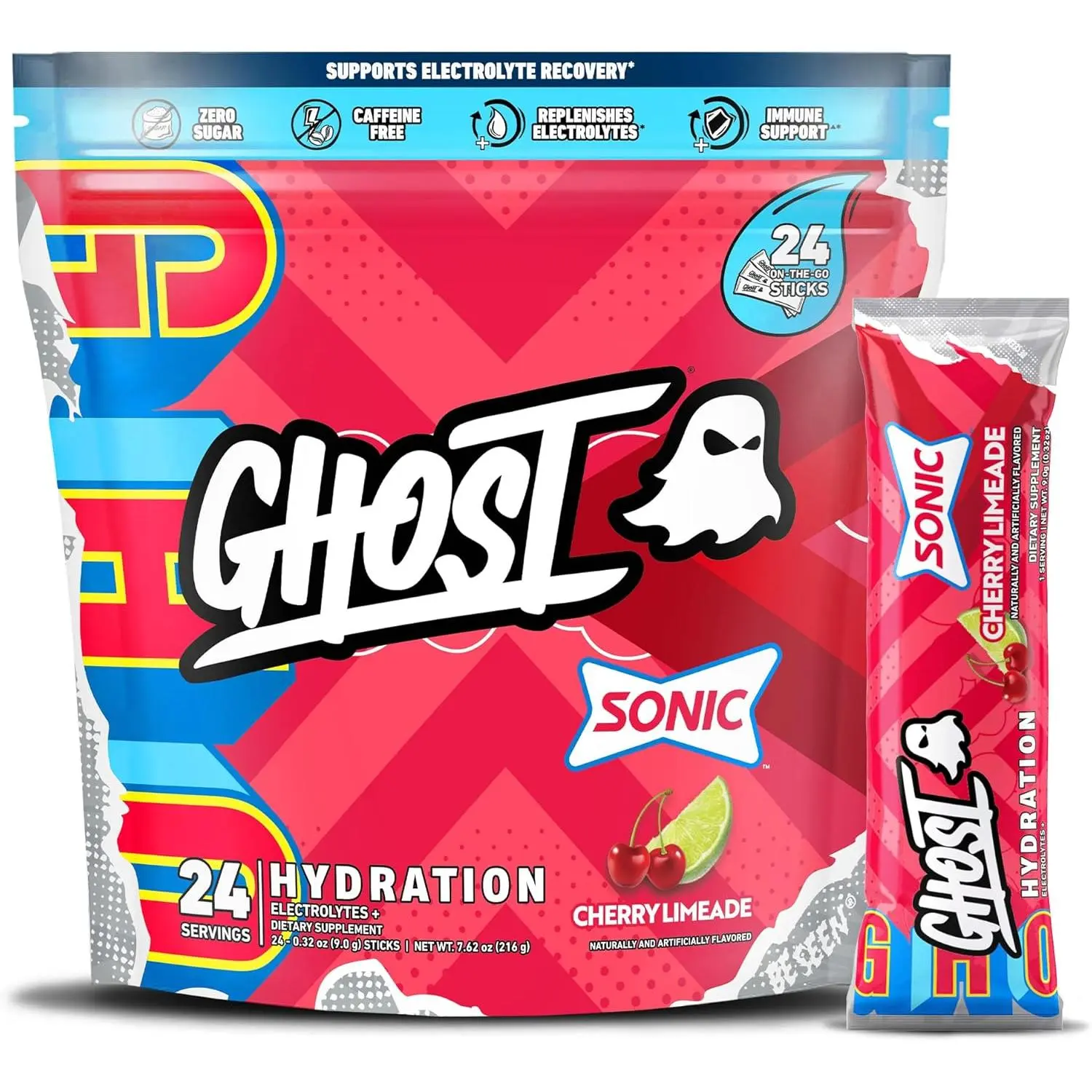 GHOST Hydration Packets Electrolyte Powder - Drink Mix Supplement with Magnesium, Potassium, Calcium, Vitamin C - Vegan, Free of Soy, Sugar & Gluten