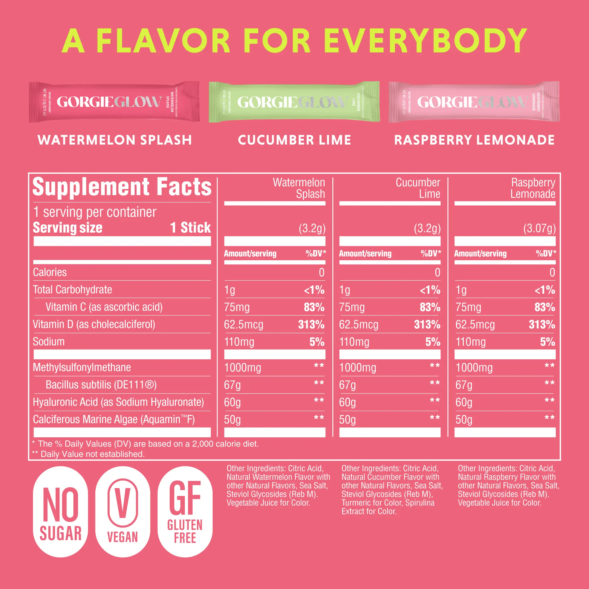 Finally got my Gorgie Glow & I'm so happy! I was scared of the the cucumber lime because because of some reviews I read, but let me tell you I've had 2 of the 3 and so far my favorite is the cucumber. Add your packet and shake, very, very well, drink and enjoy!