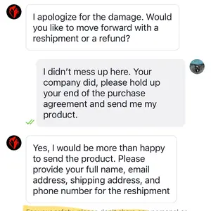 Lack of customer service. Product showed up ruined. More than two days, avoiding for a reply from customer service will not order again