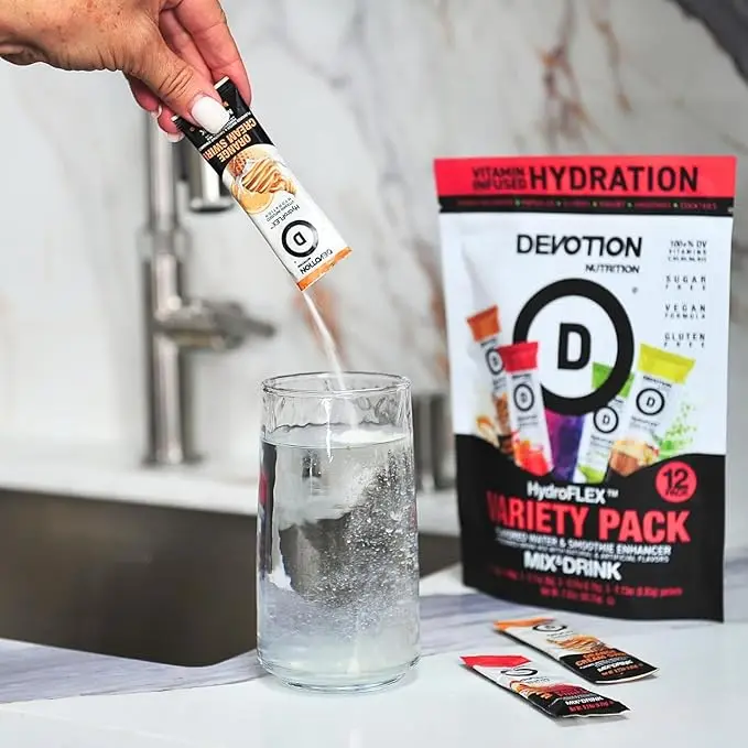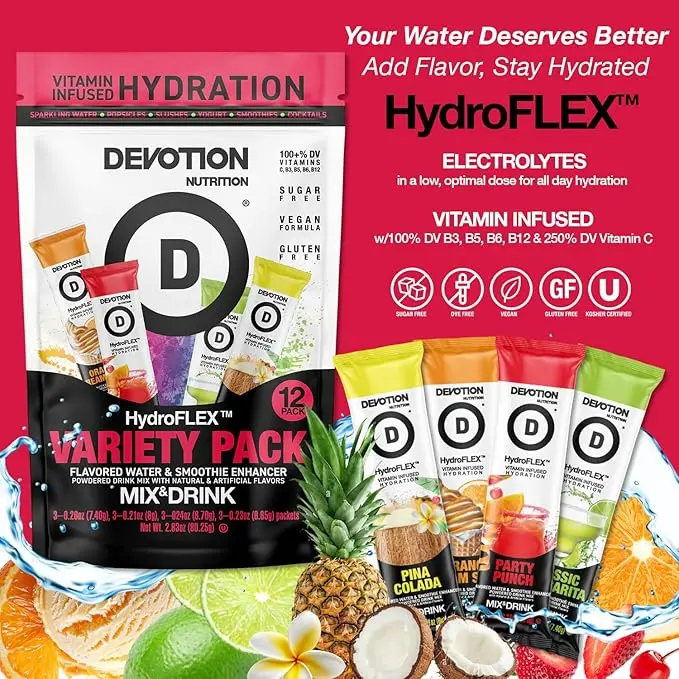 Devotion HydroFLEXâą is the perfect everyday hydration solution, offering a delicious and refreshing way to flavor your water. Designed for use more than once a day, even when you're not exercising, itâs a sugar-free, gluten-free, dye-free, and kosher option with lower sodium content.Â