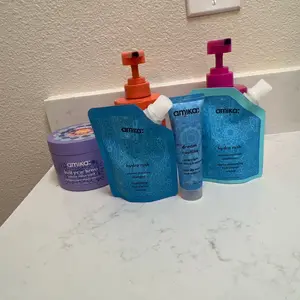 in need of a new haircare routine? try this giftset with mini refill pouches of hydro rush intense moisture shampoo, conditioner, and trial sizes of leave-in conditioner and dream routine mask.
