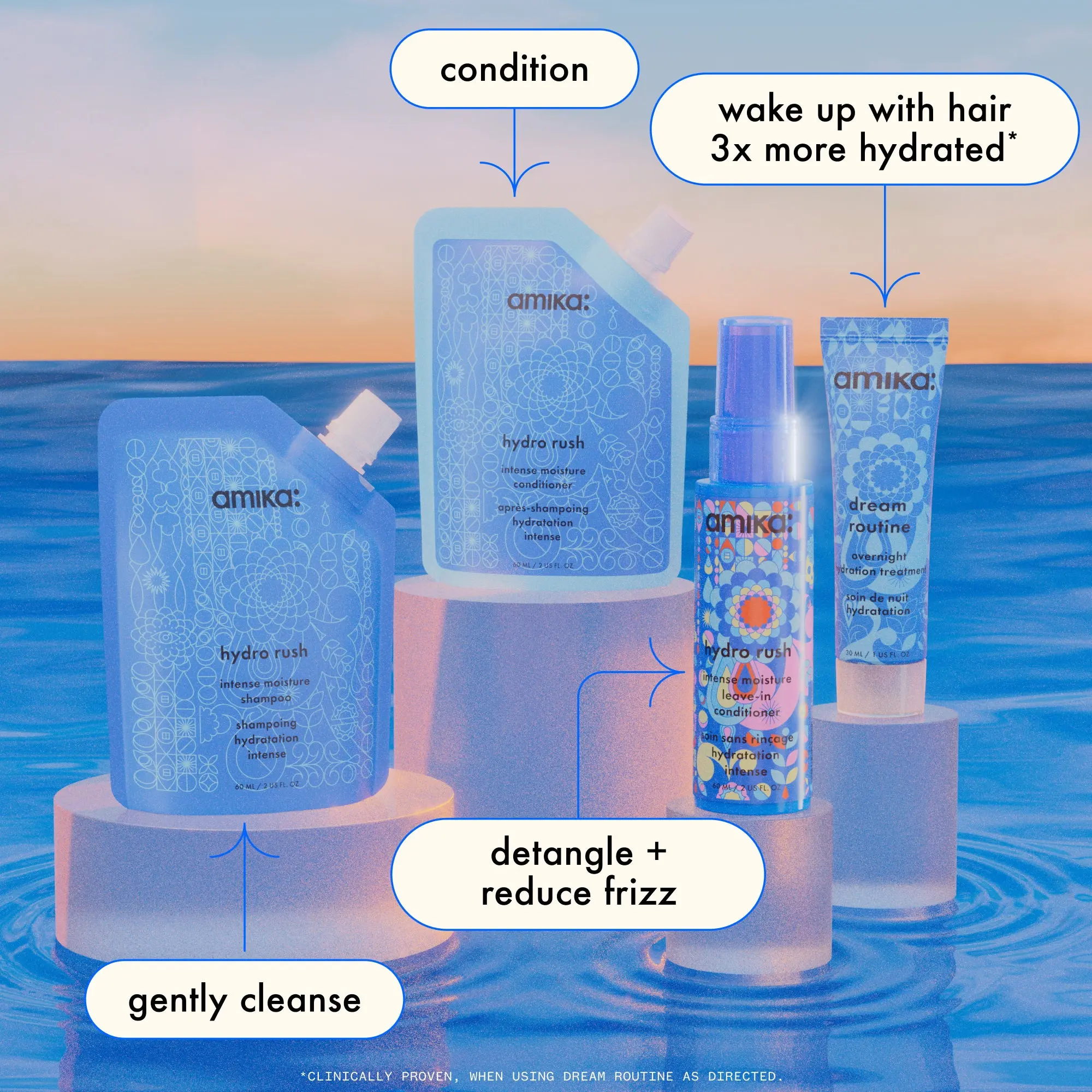 ·dream routine overnight hydrating hair mask: wake up with hair 3x more hydrated* when you use this overnight hair mask, and reap the benefits for 4 washes**.