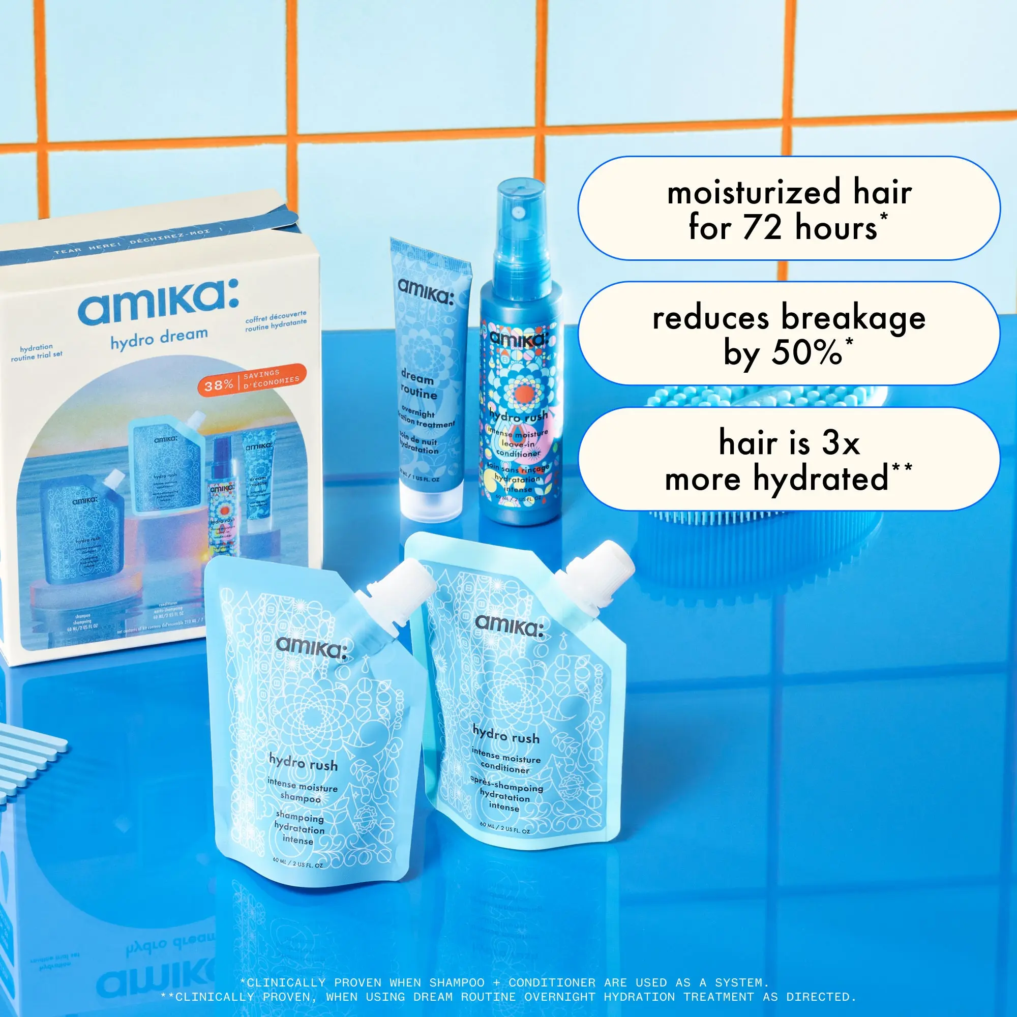*clinically proven. all products tested separately, shampoo + conditioner tested together.