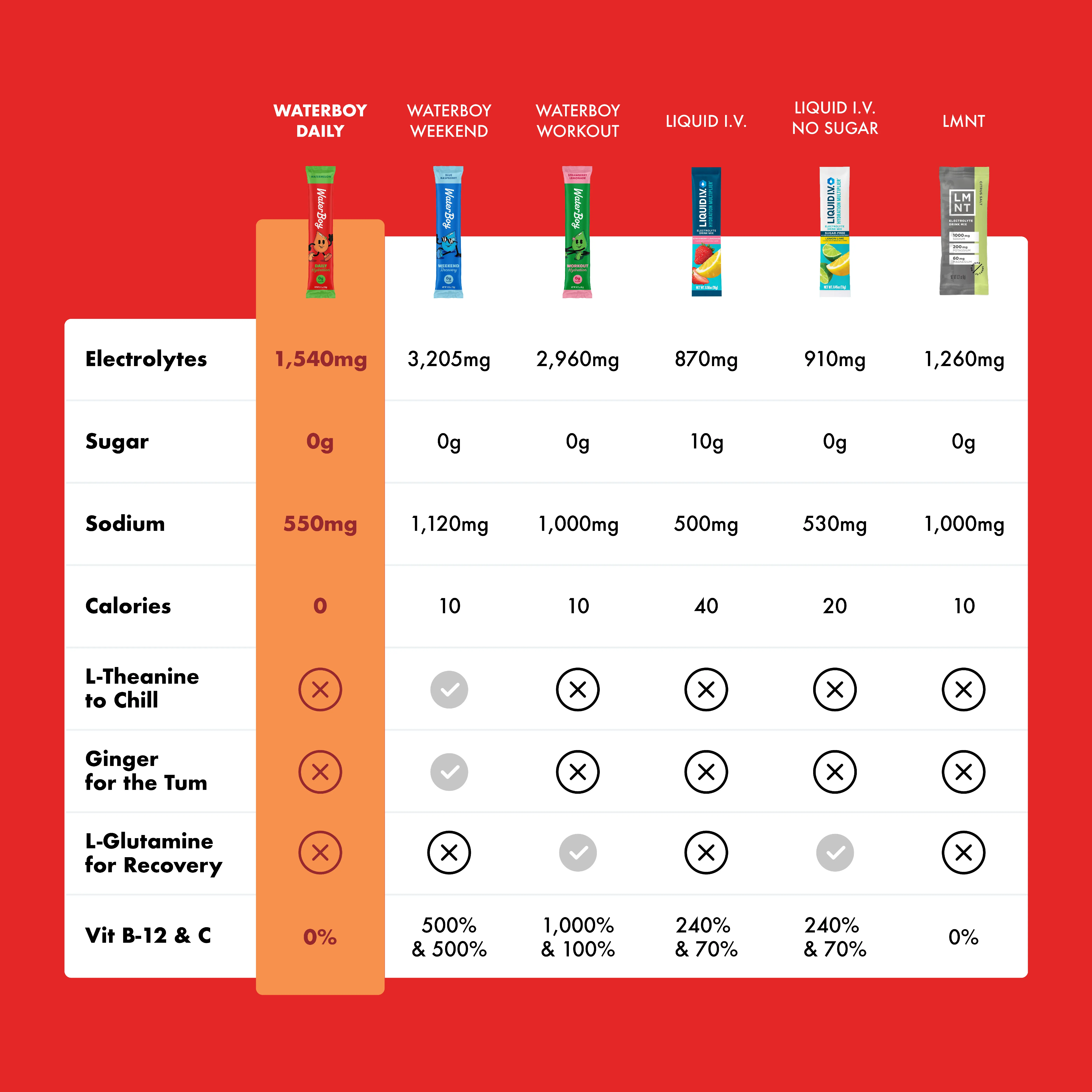 WaterBoy is a game changer! The watermelon flavor is refreshing without being too sweet, and I love that it has 0g sugar. It mixes easily, tastes clean, and actually helps me feel rehydrated faster than plain water.