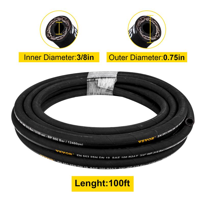 • 【100 FT HYDRAULIC HOSE】- The coiled hydraulic hose is 100 ft long in total, the inner diameter is 3/8 inch, and the outer diameter 3/4 inch. With a 5000 PSI working pressure, the hydraulic line is explosion-proof.