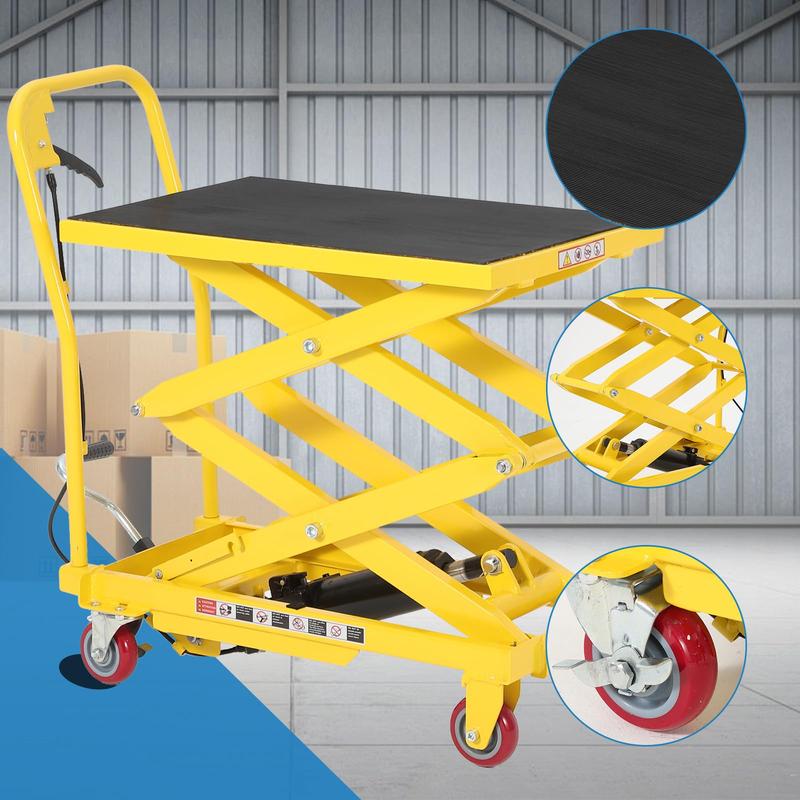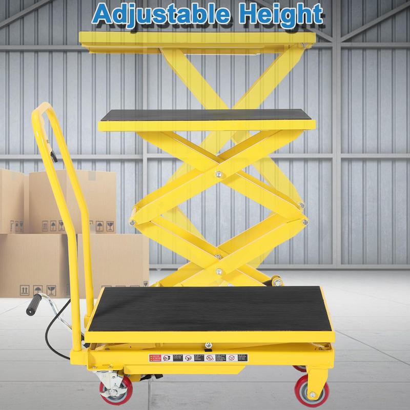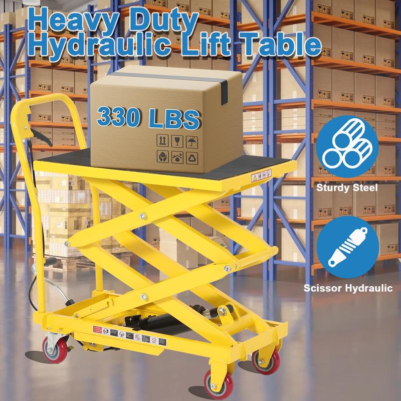 · Robust Construction: Built from rugged carbon steel, this heavy duty lift table supports up to 330 lbs to handle pallets, parts, or equipment with ease. The scissor lift table's solid frame provides durability and safety for tough industrial or garage tasks