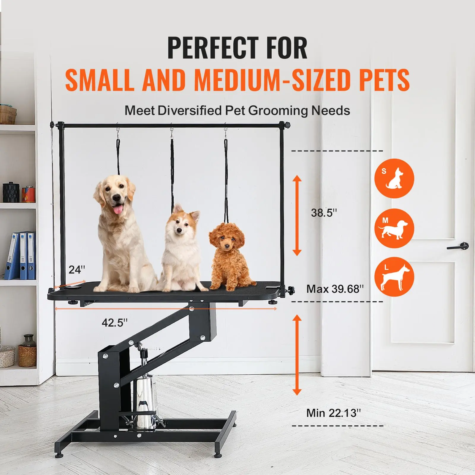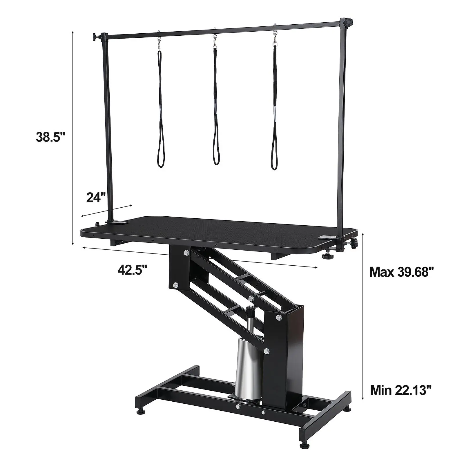 • Convenient Thoughtful Details: Designed with three ropes for securing pets more firmly, accommodating different types of pets. The 38.5" elevated arm reduces bending, while the rounded tabletop edge prevents collisions and ensures safety. The waterproof, non-slip tabletop design provides a stable platform for pet grooming.