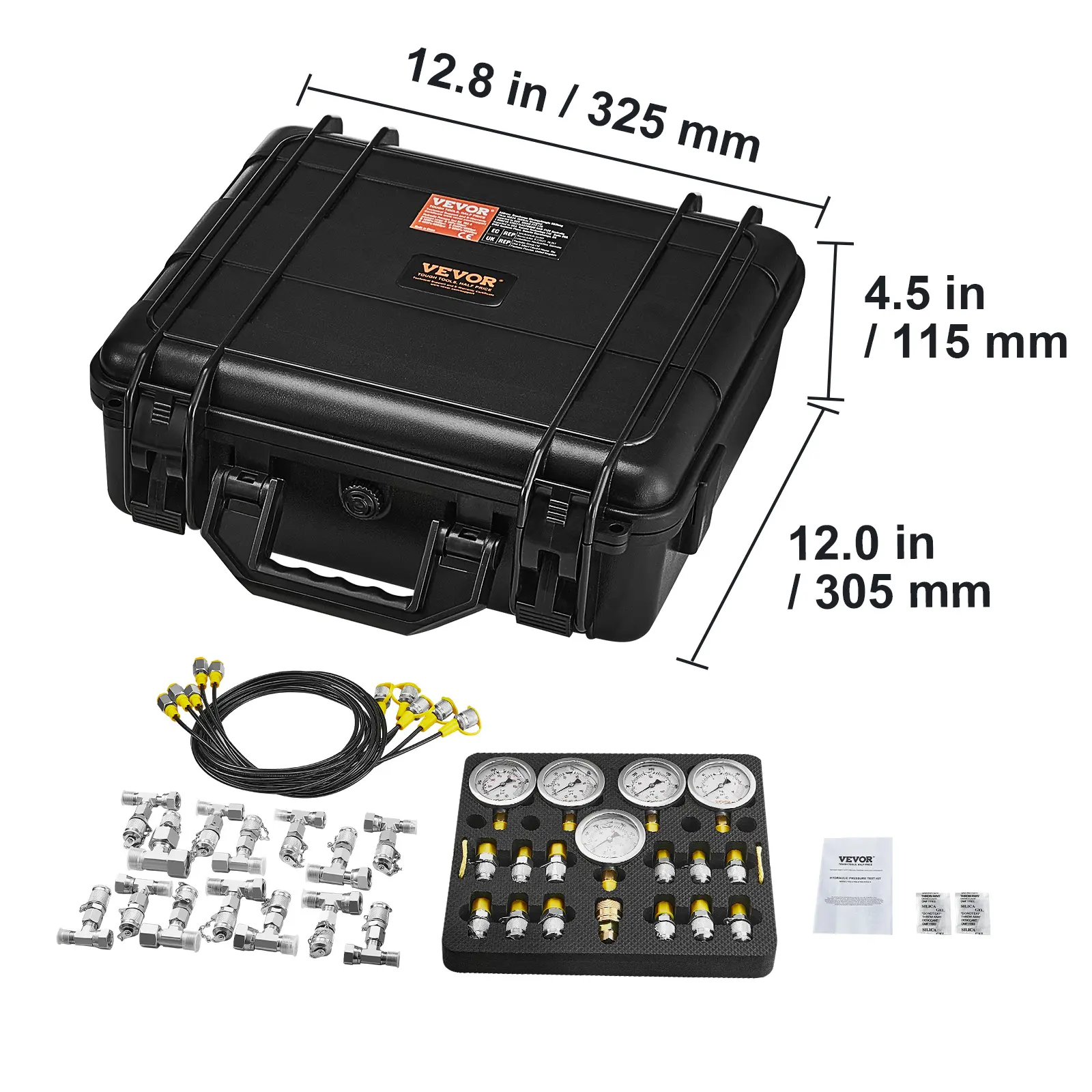 • 5 Hoses and Portable Box: Five 5.2 ft/1.6 m test hoses are included to facilitate the pressure test gauges placement within the machinery for easy reading. All testing components are neatly organized in a ABS plastic carrying case. Its compact design saves storage space and allows for easy transportation. And desiccants are provided to keep the hydraulic pressure test gauge kit dry and prevent rust.