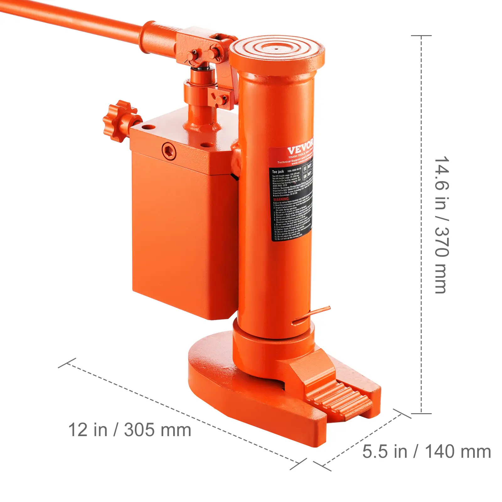 • Meets Different Height Requirements: Top Height Range: 14.6-22.4 inch (370-570 mm) / Toe Height Range: 1.0-9.1 inch (25-230 mm), it caters to various height ranges, solving lifting challenges for low-profile equipment. Easily lift low clearance vehicles, industrial equipment, and containers, widely used in vehicle maintenance, construction operations, equipment handling, and more.