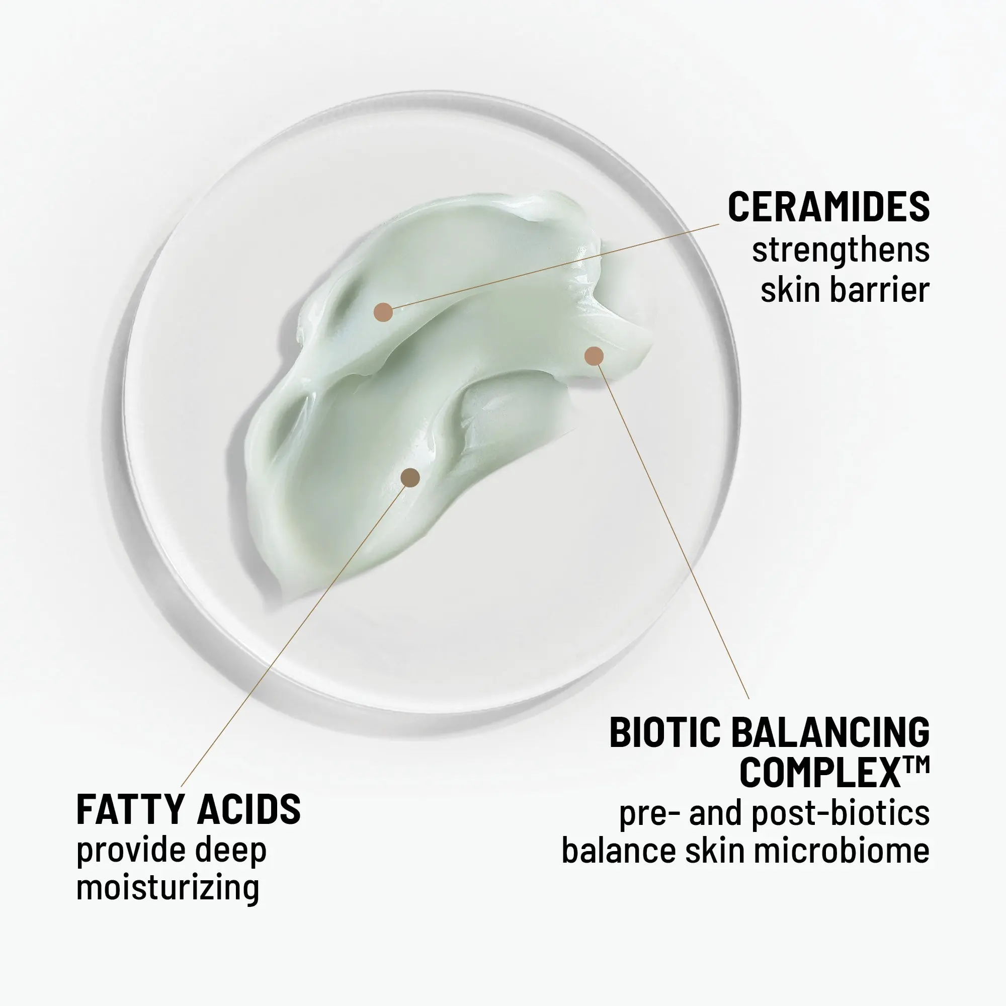 HYDRO BIOTIC™ is designed to deeply hydrate and soothe irritated skin. Its calming actives and biotics help strengthen the skin barrier, reducing signs of inflammation and redness, including those associated with rosacea.