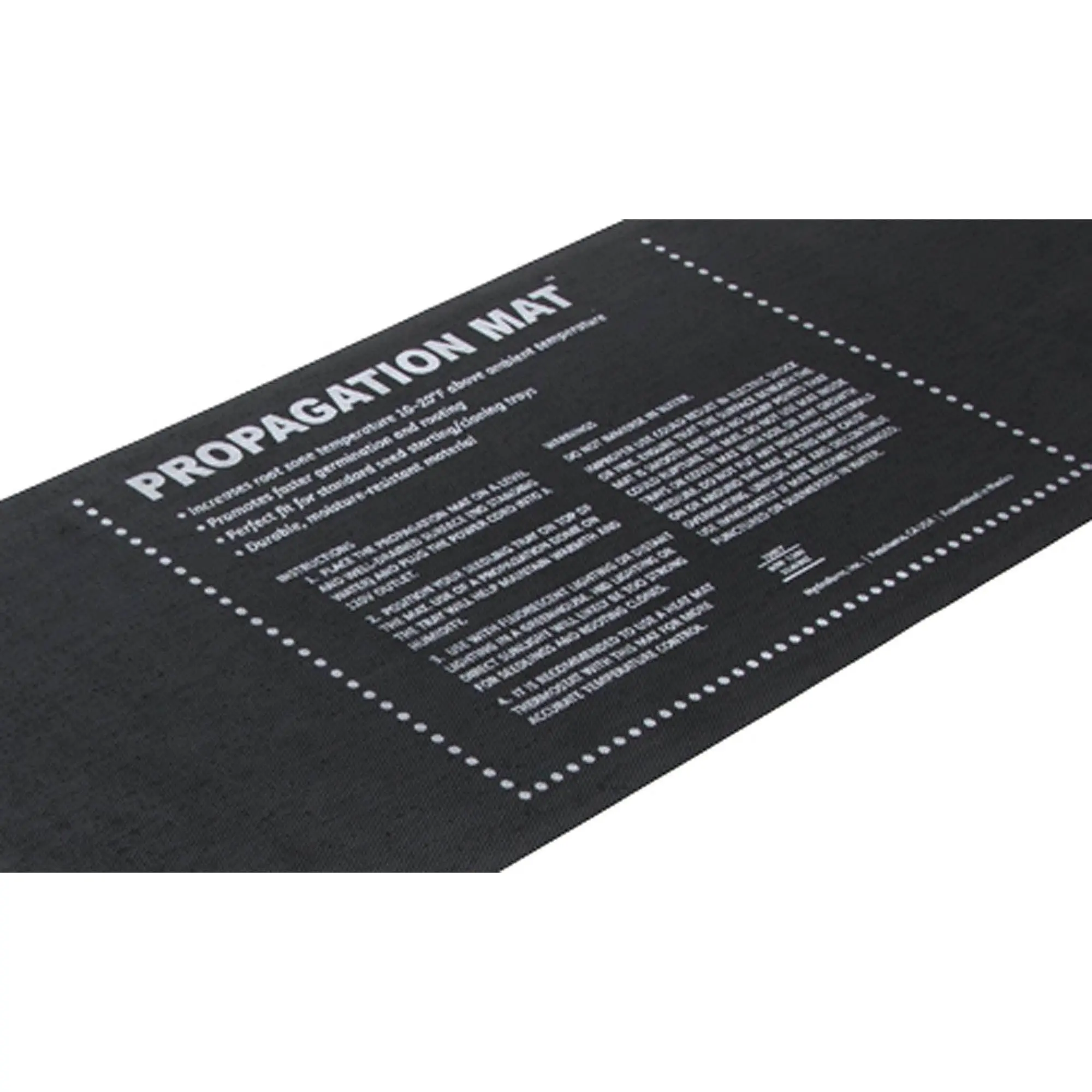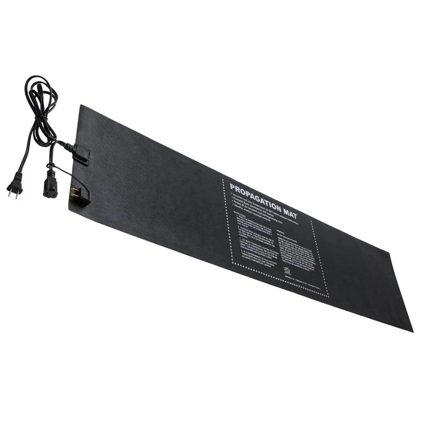 This 3 pack Hydrofarm 12x48 Inch Propagation Mat provides bottom heat that enhances germination and rooting.This seeding and propagation mat is 48 inches long and ideal for placing 2 standard trays end to end. It warms the rooting area to 10 20 degrees above ambient temperature. Place it under a 4 foot fluorescent fixture and ensure the bottom surface of your trays will be heated uniformly. Daisy chain up to 10 mats to reduce the number of power outlets being used and run multiple mats to a single outlet. The heavy duty construction allows you to use the mat reliably for years on end. Heat is essential for effective sprouting, so grab a Hydrofarm 12x48 Inch Propagation Mat and watch your plants flourish.