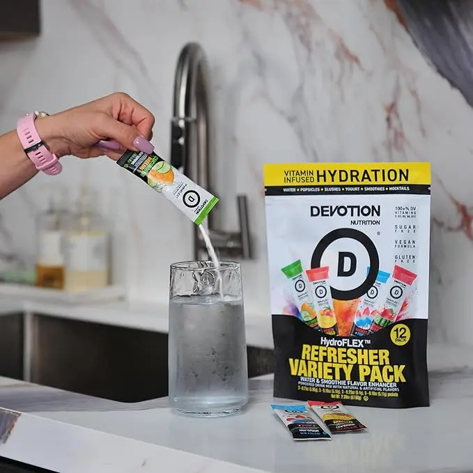 Devotion HydroFLEX™ is the perfect everyday hydration solution, offering a delicious and refreshing way to flavor your water. Designed for use more than once a day, even when you're not exercising, it’s a sugar-free, gluten-free, dye-free, and kosher option with lower sodium content.