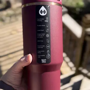 She is absolutely gorgeous! The cup is such a beautiful color. This is the first sport I’ve purchased. My other ones are travelers. And I really like the top handle. So easy and convenient. And of course my favorite feature of all HydroJugs is its spill proof!