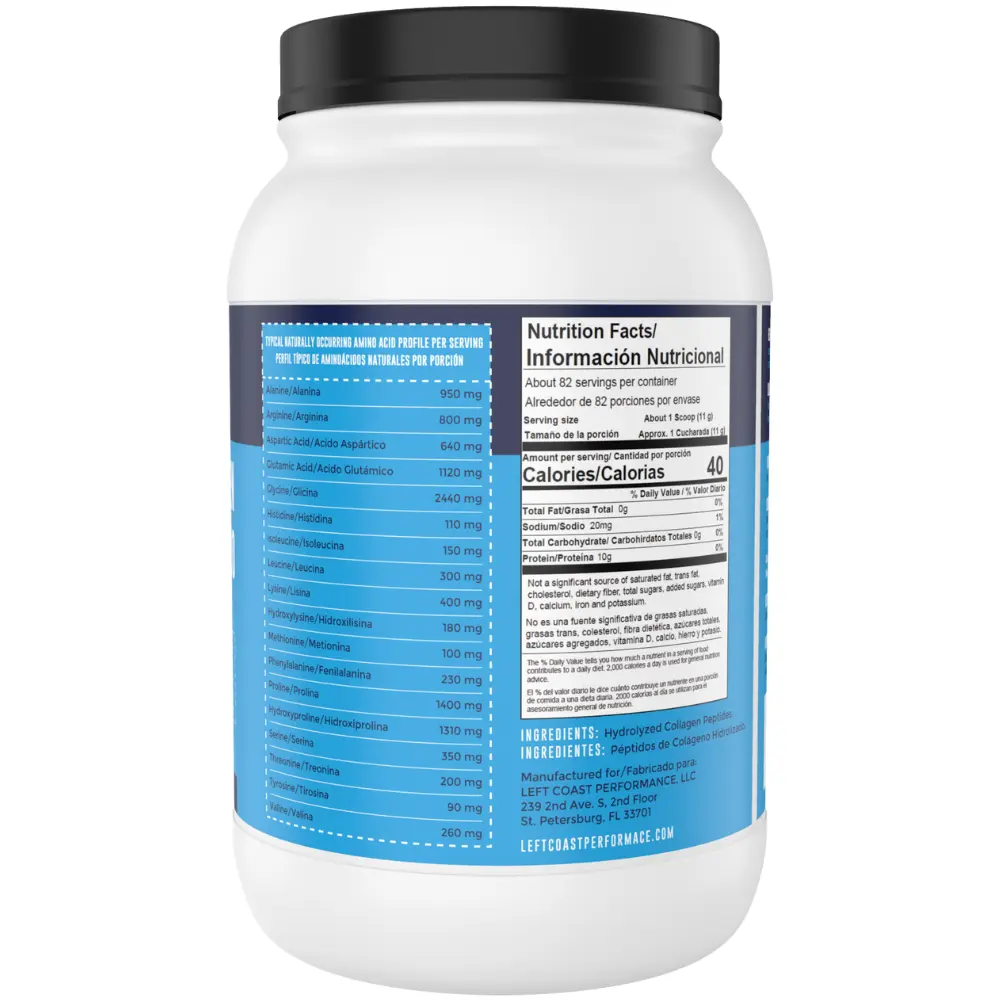 ·MEJOR VALOR POR TU DINERO: en Left Coast Performance, somos conocidos por ofrecer productos prémium a precios muy razonables. Obtenga 32oz de Colágeno Hidrolizado por tan solo $44.99. ¡Eso es solamente $ 0.55 por porción!