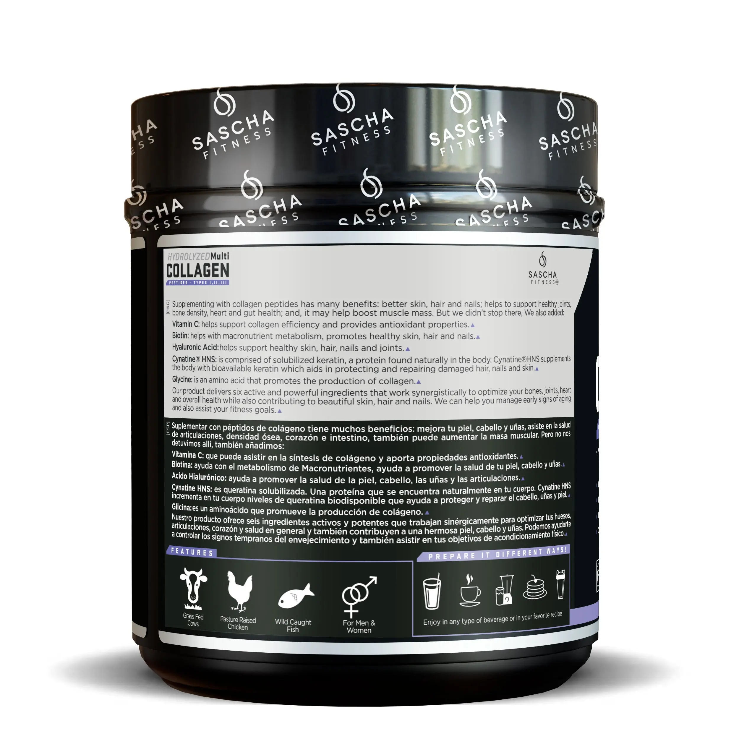 Our new Collagen base supplement is designed to help you combat early signs of aging. It will be a great ally to improve the quality and health of your skin, hair and nails. But it’s not a regular collagen supplement, it’s an amazing formula made with high quality collagen, we used Hydrolyzed collagen peptides from grass-fed cows, pasture raised chicken and wild caugh fish, and It serves as a base for all the other components; Hyaluronic Acid, Biotin, Cynatine® HNS, Vitamin C & E , they all work in synchrony. It's an effective and cutting edge formula that will help you glow from the inside out!