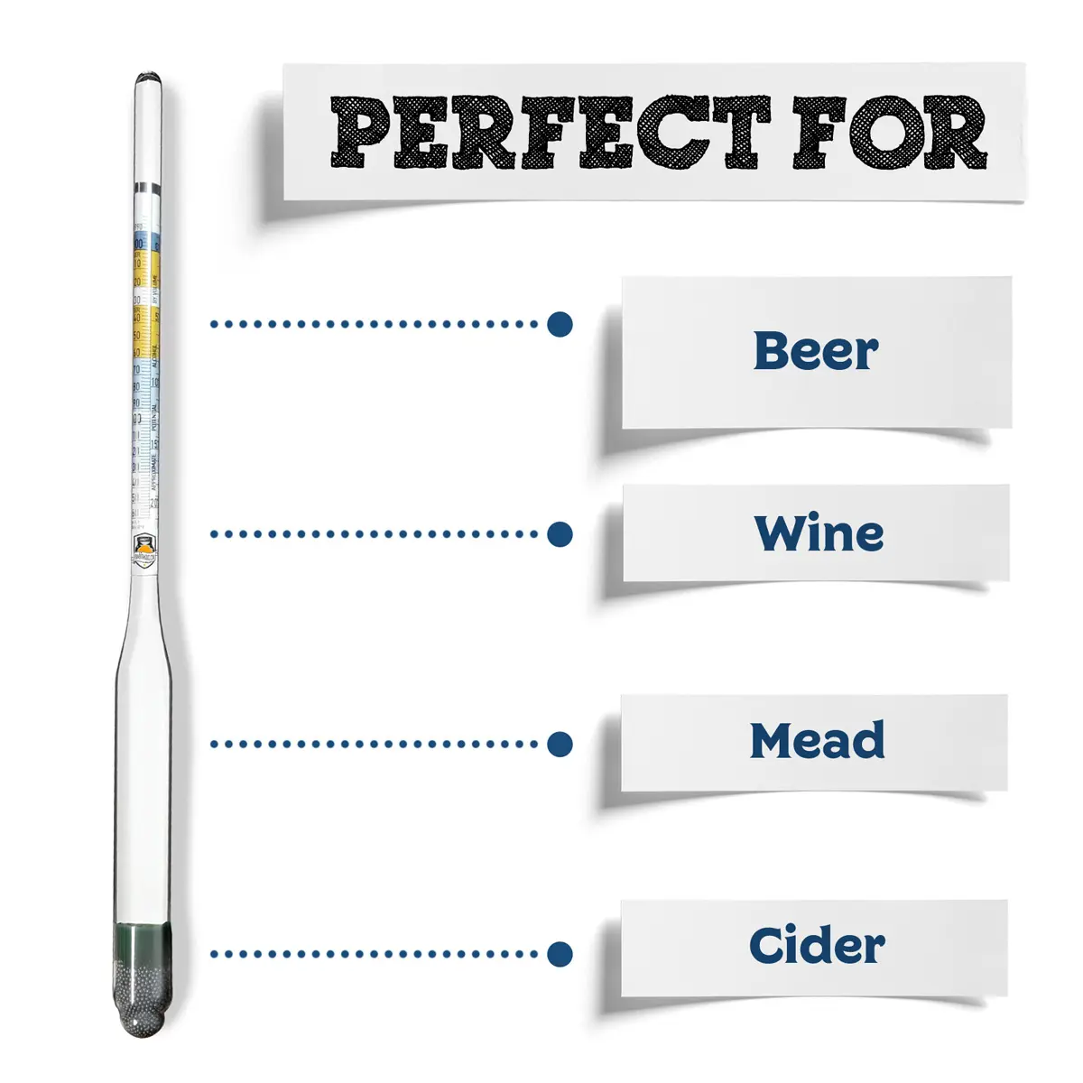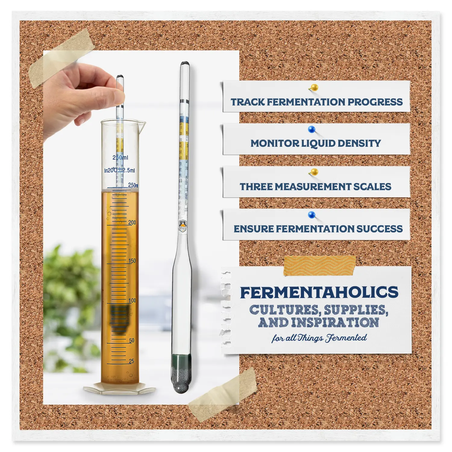 Accurately measure sugar levels and fermentation progress with the triple-scale hydrometer.