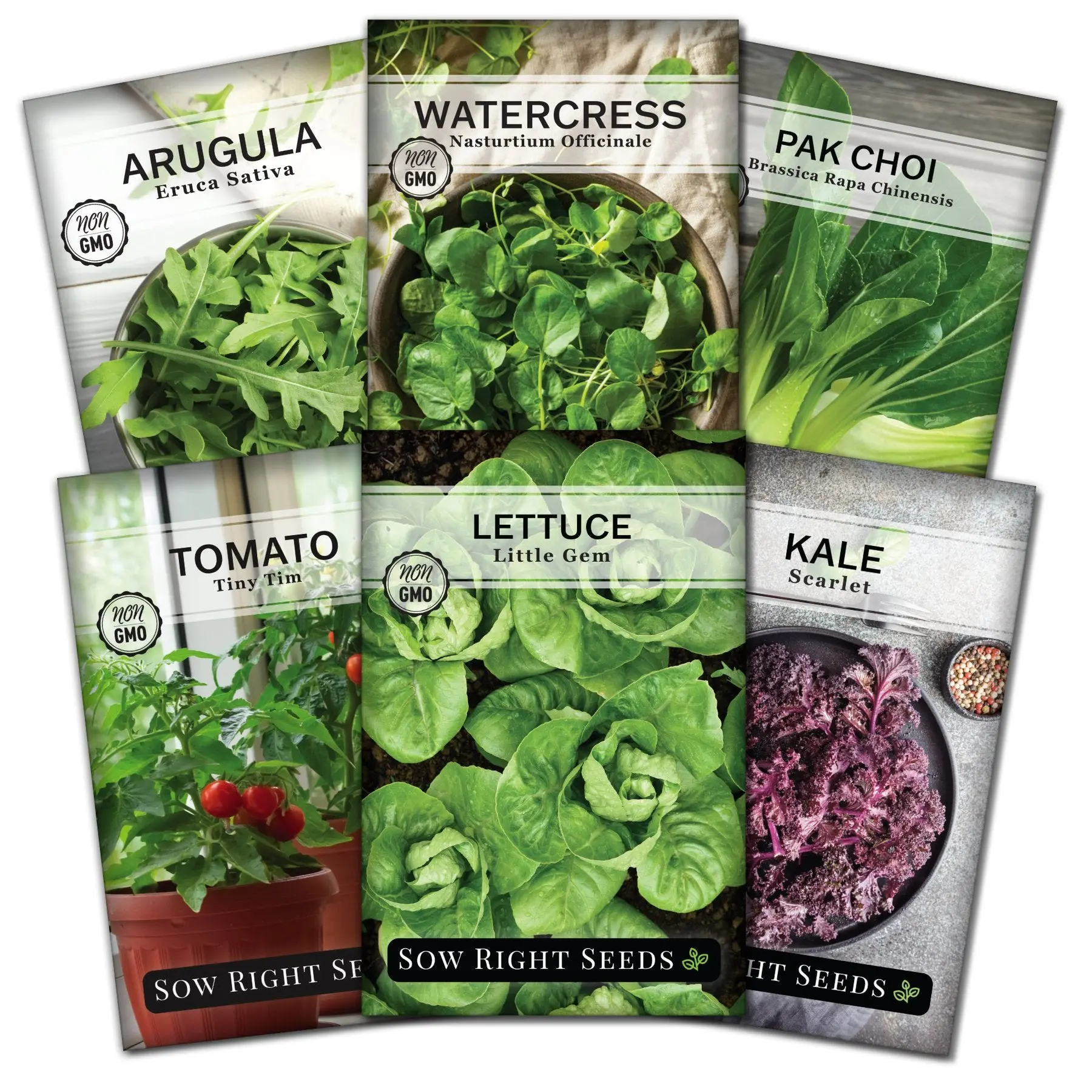 Our hydroponic vegetable greens collection contains large colorful packets of popular varieties that are compatible with aerogarden and other hydroponic systems including Little Gem Lettuce, Scarlet Kale, Arugula, Tiny Tomato, Watercress & White Stem Pak Choi. This collection makes a wonderful gift.