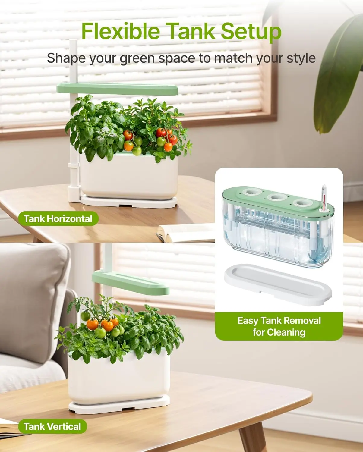 Compact & Minimalist Design——Designed with a clean and space-saving appearance, this indoor hydroponics growing system fits perfectly on kitchen counters, desks, or windowsills. Ideal for small apartments, classrooms, or offices.