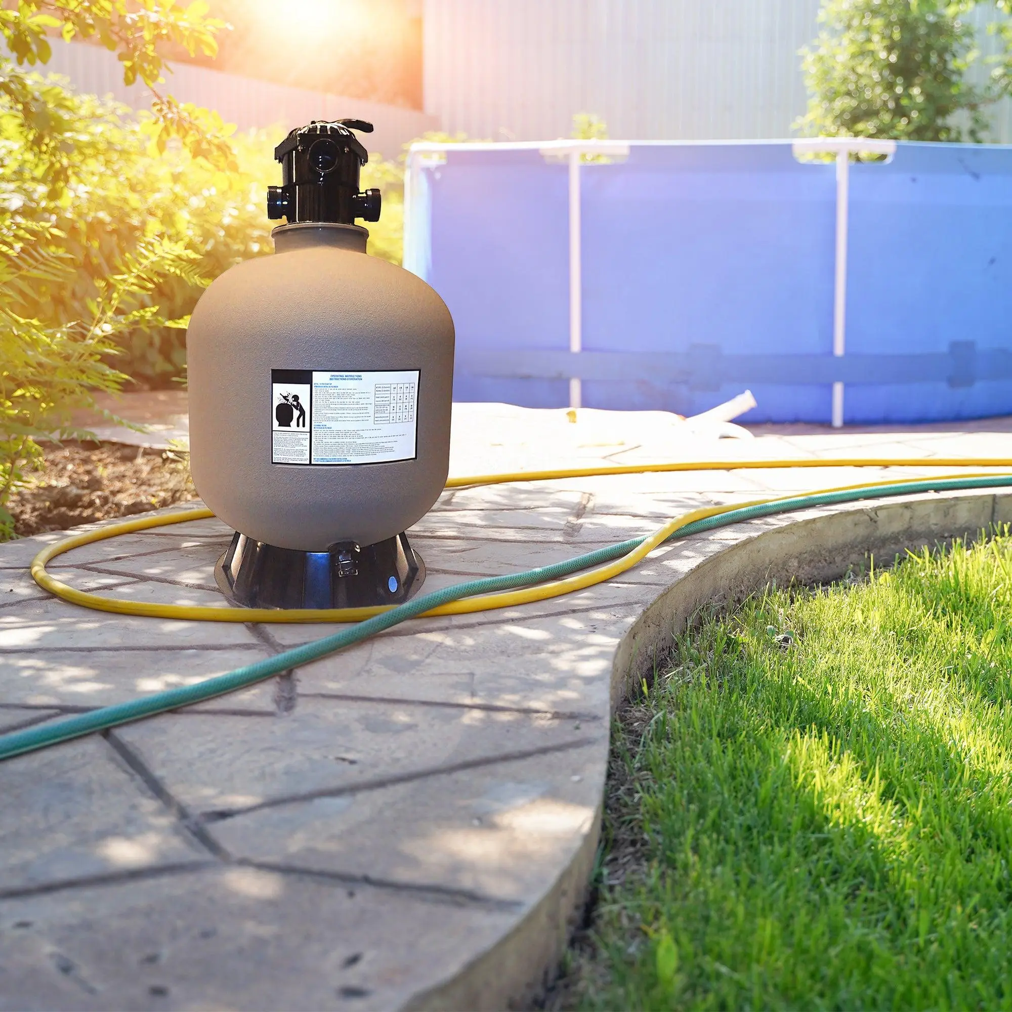 Hydrotools by Swimline's extensive Sand Filter collection sets the standard for performance at affordable prices. Hydrotools sand filters are meticulously designed to efficiently and consistently filter your pool while optimally conserving energy and complying to new DOE compliance and regulations. This ultimately leaves Hydrotools customers with filters perfectly constructed to promote the cleanest water quality, while providing a quick, simple user experience. Our tanks are carefully molded and double reinforced to ensure a reliable, air tight compartment for filtration action. Sand can withstand approximately 5 years of use before replacement depending on water chemistry and proper backwashing frequency. Sand is not included with our filter systems. The pumps housed by our sand filter combo systems have been upgraded to run on low noise levels, creating a fantastic user experience for our customers. Hydrotools pumps also now far exceed current performance and efficiency regulations. All Hydrotools Sand Filter Combo Systems come with everything you need out of the box. Components include: Tank, Pump, Filter Base, Multi-Port Valve, 3-Prong Plug & Power Chord, and more. Spend less time worrying about maintaining your pool, and more time enjoying it - the Hydrotools goal is to help you achieve more quality time on the water with friends and family.