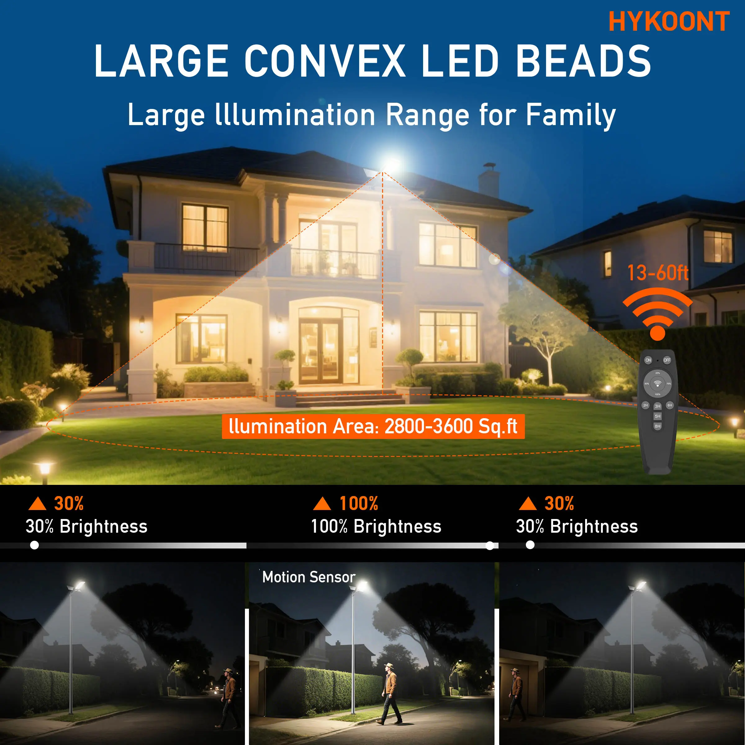 Super Bright & Wide-Coverage Lighting Solar Lights Outdoor- Upgraded Spherical Lens & LED Chips: HYKOONT solar lights deliver powerful illumination without glare, perfect for patios, driveways, and yards.- 3600 Sq.ft Illumination Range: Covers an extensive area with even, flicker-free light, eliminating dark spots.