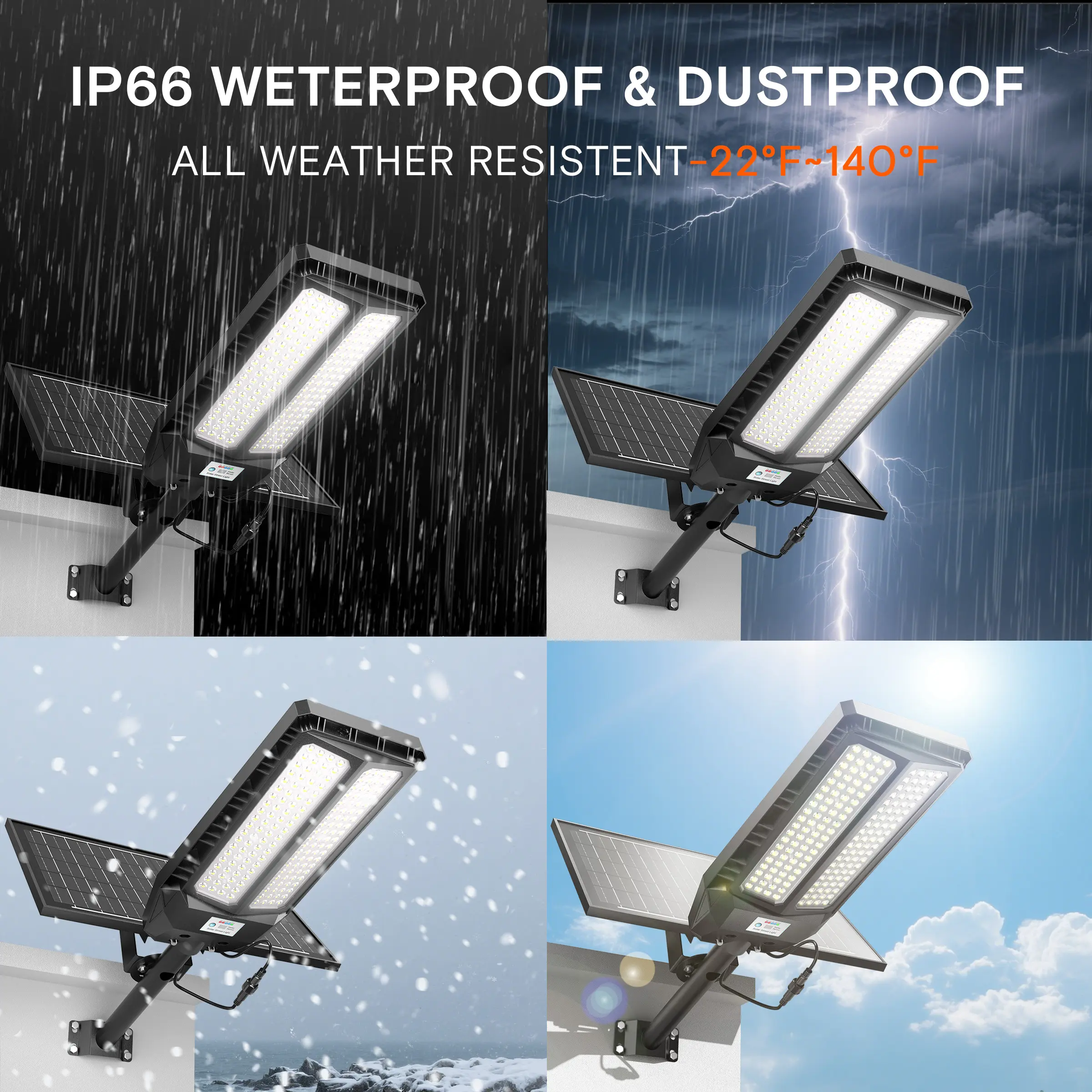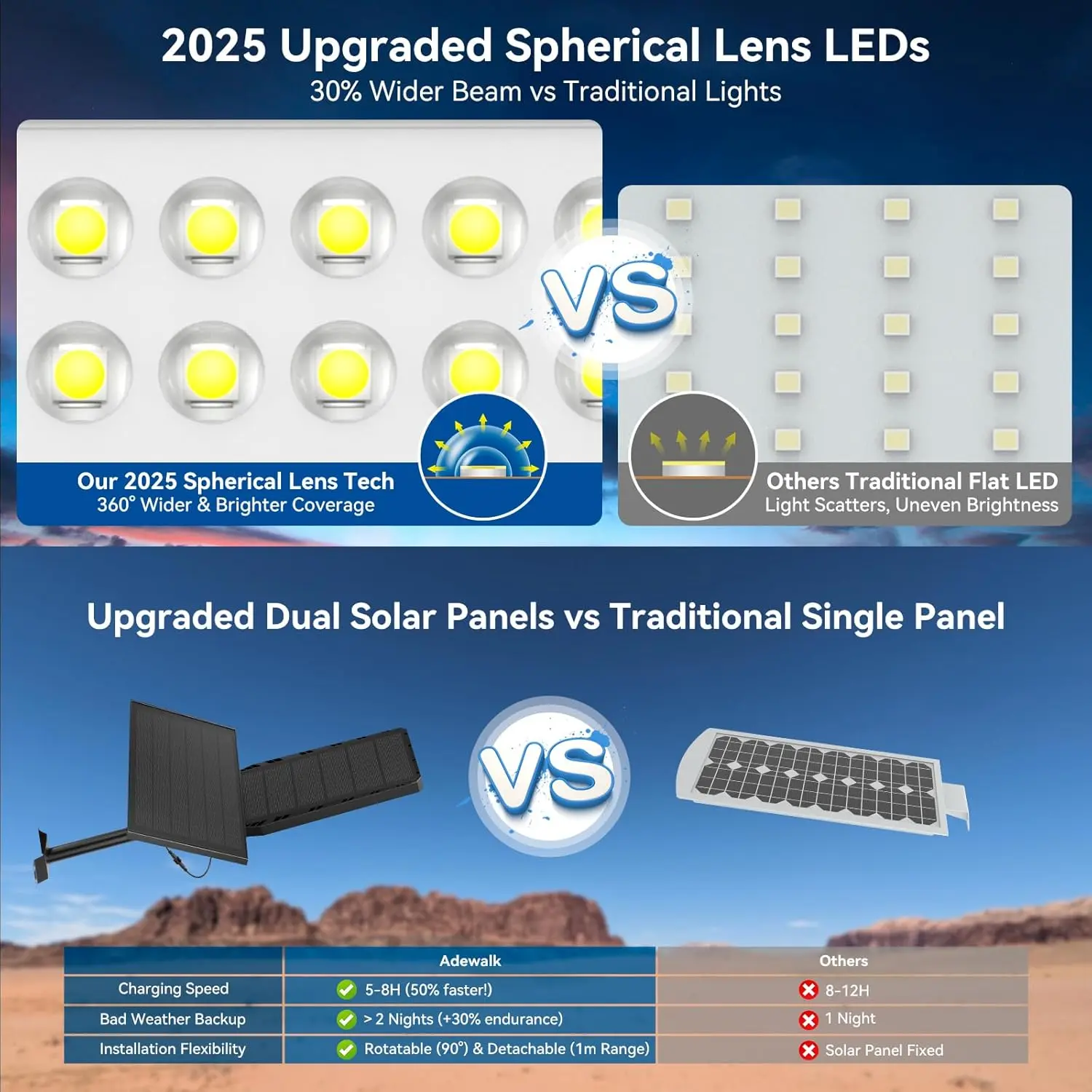 High-Efficiency Dual Solar Panels & Long-Lasting Battery- Faster Charging: Offers faster charging than single-panel solar lights.- Adjustable Angles (0°-90°): Maximizes sunlight absorption.- Large Battery: Provides all-night lighting (up to 24 hours) with 4-6 hours of charging.- Weather-Resistant IP66 Waterproof: Suitable for year-round use.