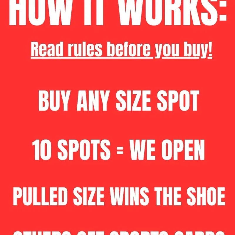 ·This is a live sneaker break and is completed on stream once all sizes are sold.
