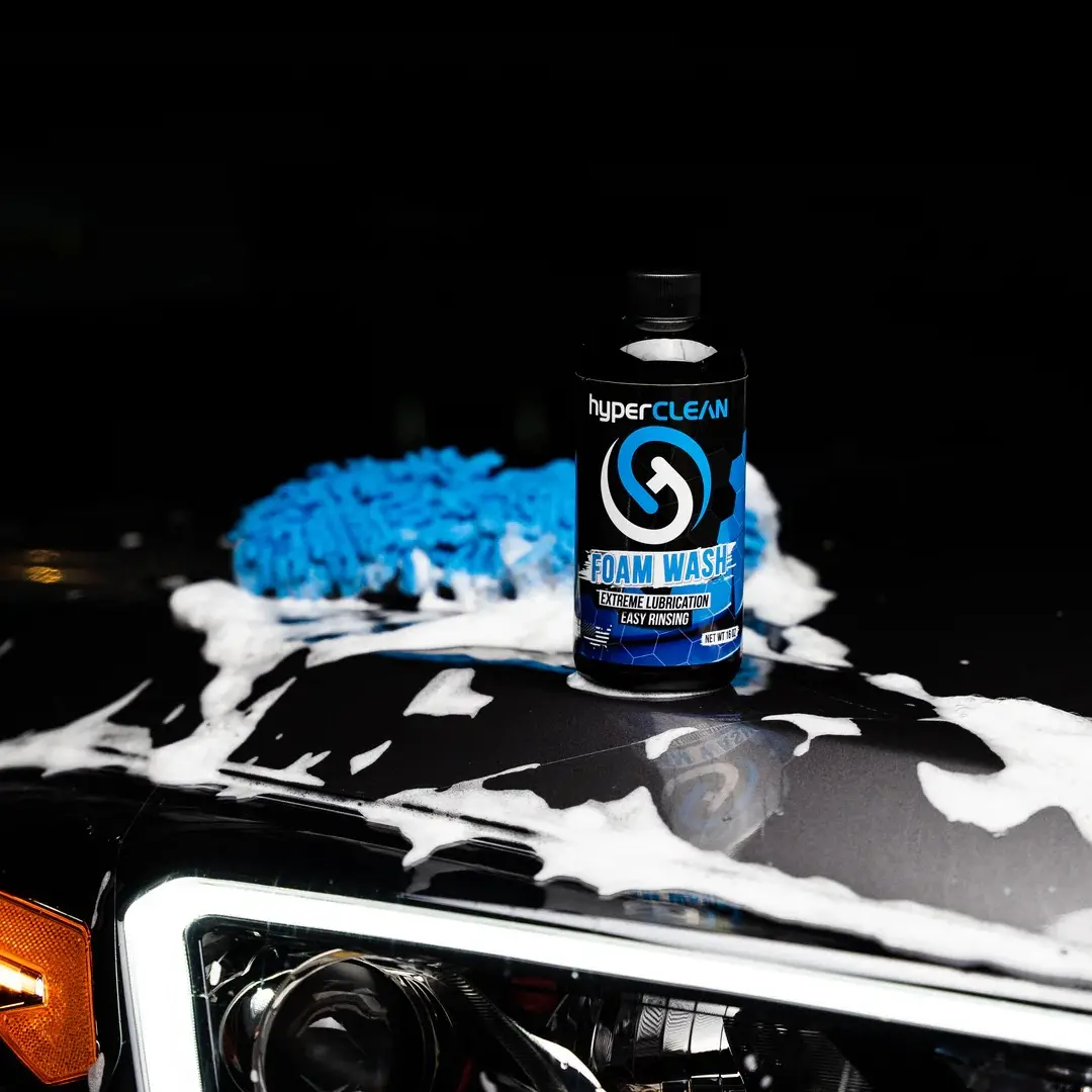 Hyperclean Foam Wash is designed to be the safest and most well-balanced car soap on the market. Many soaps leave heavy residue, but our soap easily rinses off.