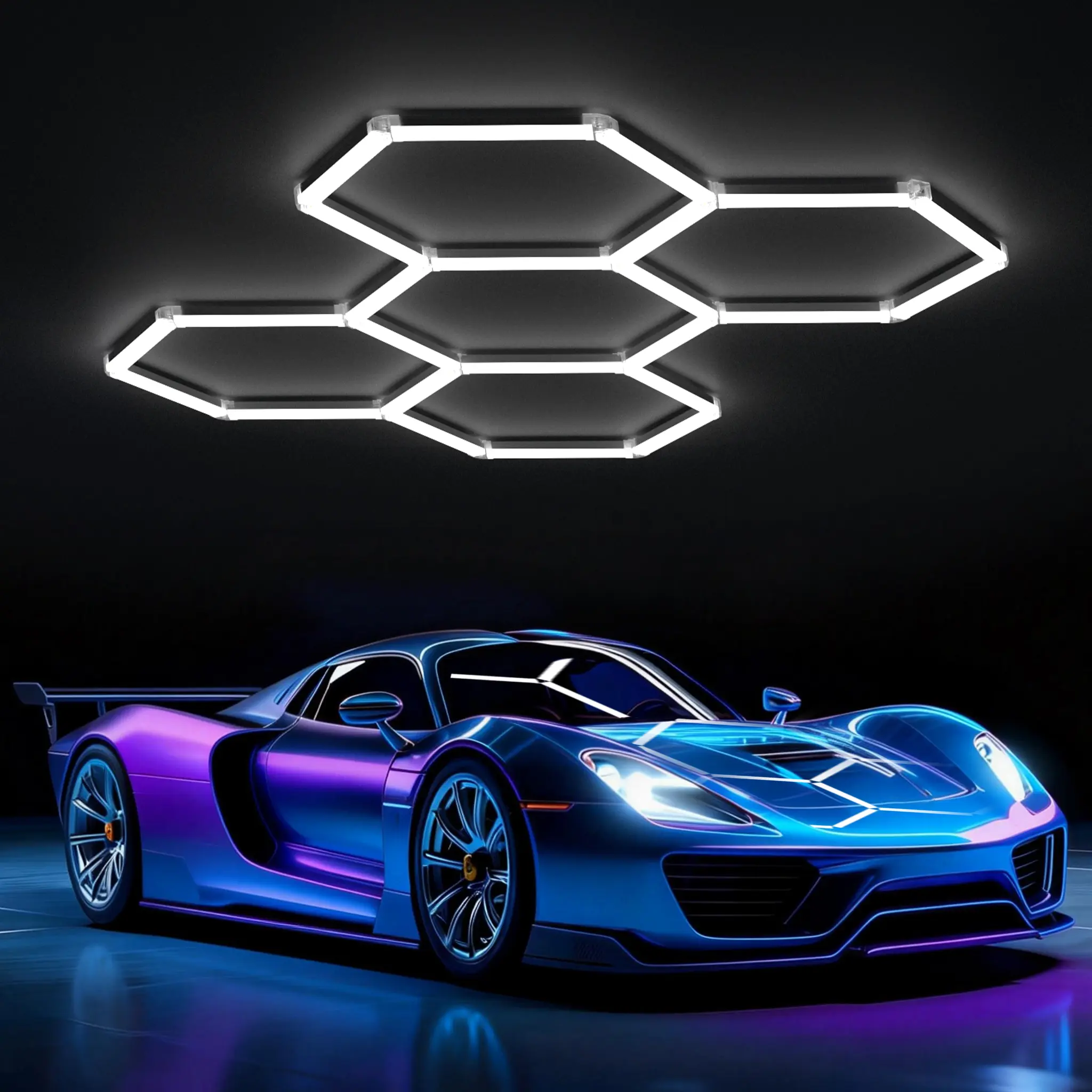 Ultra Bright: These HYPERLITE hexagonal garage lights provide a powerful light output in different grades, providing superb brightness for the garage or workspace. 6500K Cold White color temperature ensures clear and bright illumination ideal for tasks such as auto detailing, workshop activities, or gym workouts. activities or gym workouts, among other tasks.