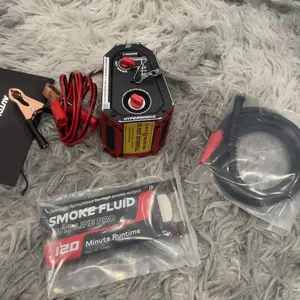 Machine Only (No Adapters): HyperSmoke™ unit, 12V power cable, 2 packets of smoke fluid, dipstick, hose, pipette, hood hook